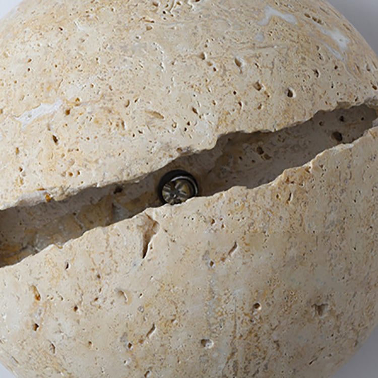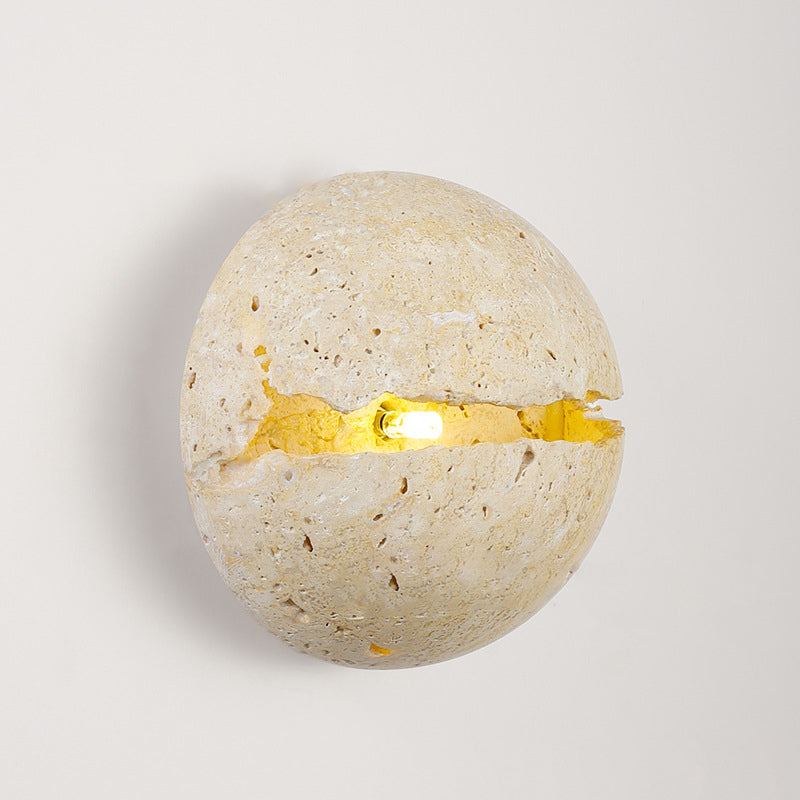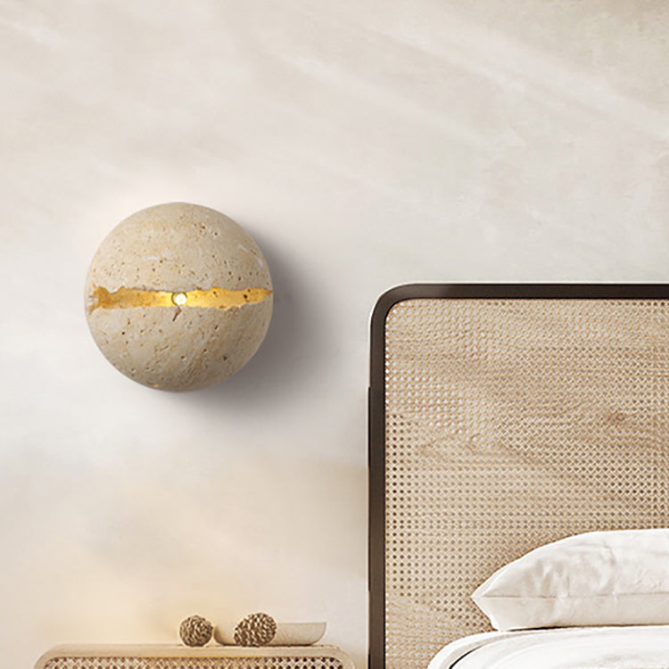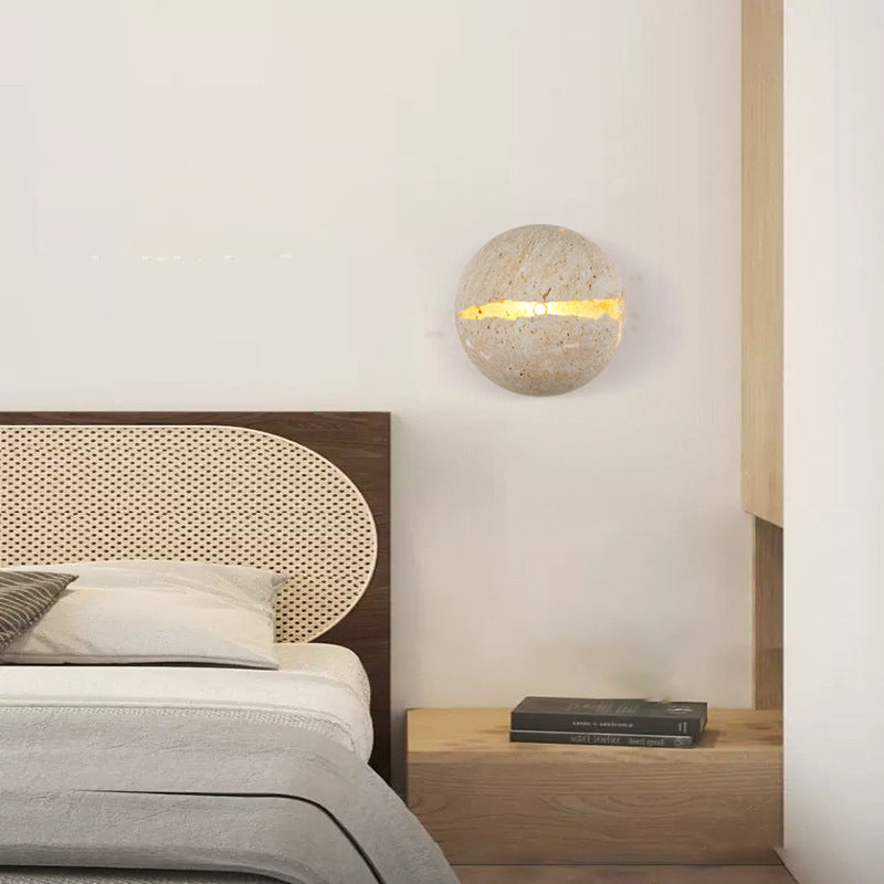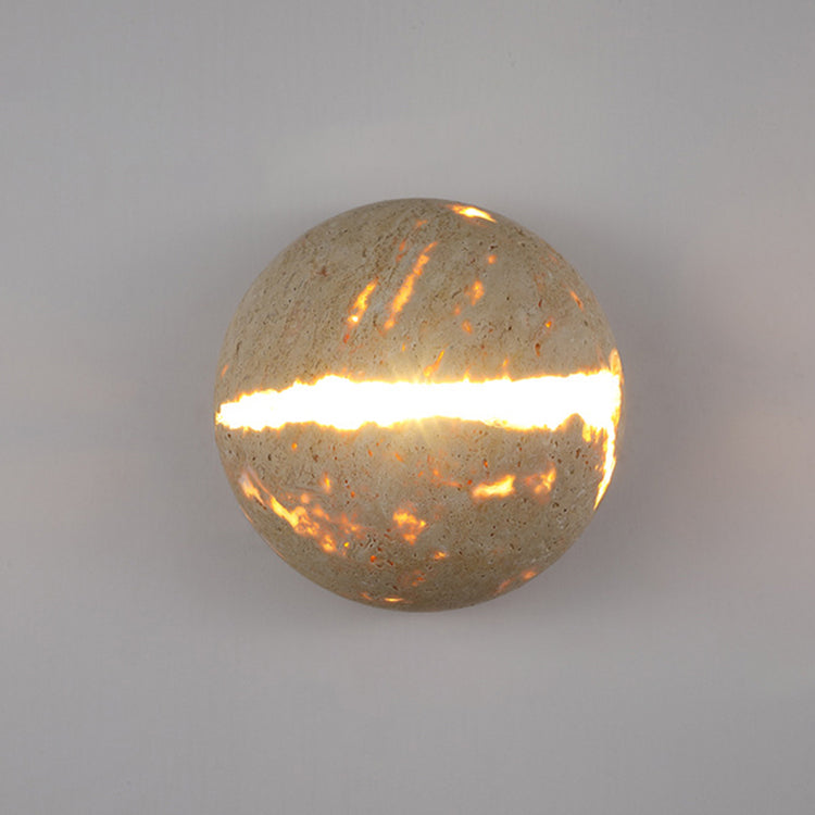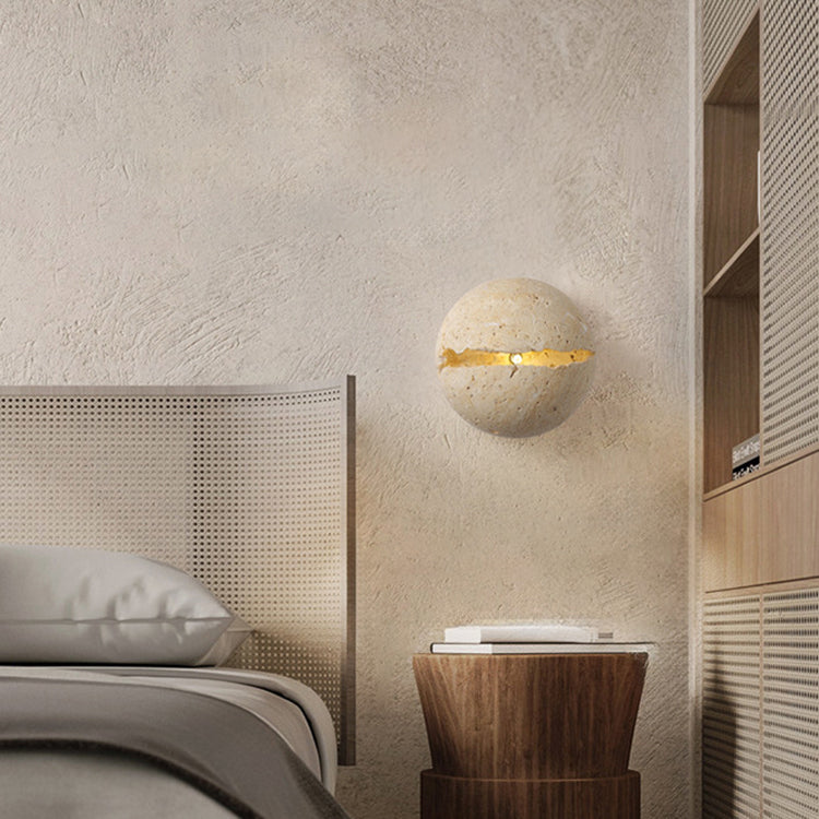 Traditional Japanese Crack Yellow Travertine Semicircle 1-Light Wall Sconce Lamp For Living Room
