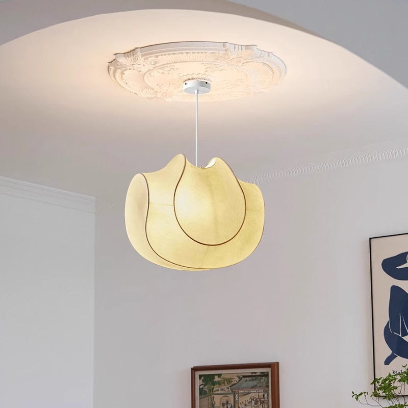 Traditional Japanese Cream Oval Imitation Silk Iron 1/3 Light Pendant Light For Bedroom