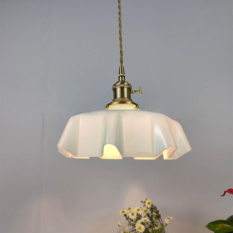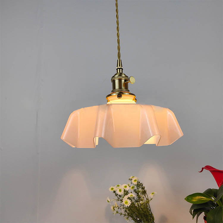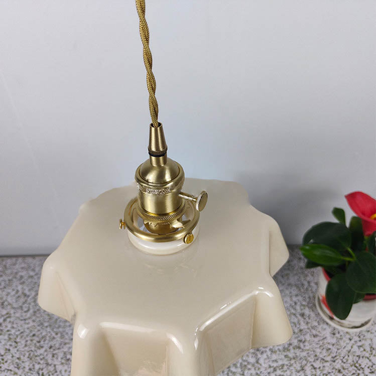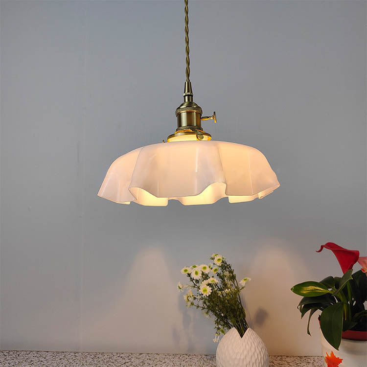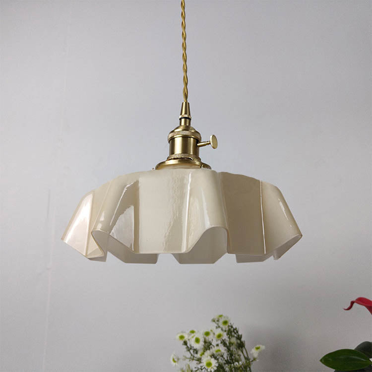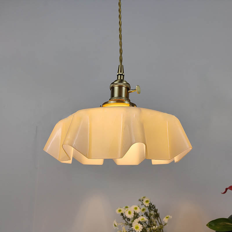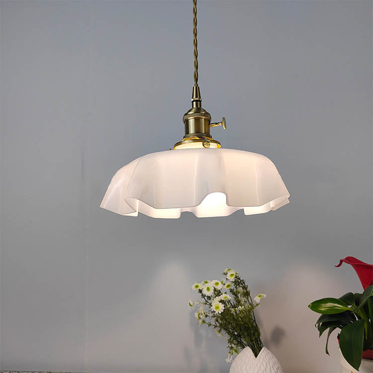 Traditional Japanese Cream Petal Glass 1-Light Pendant Light For Dining Room