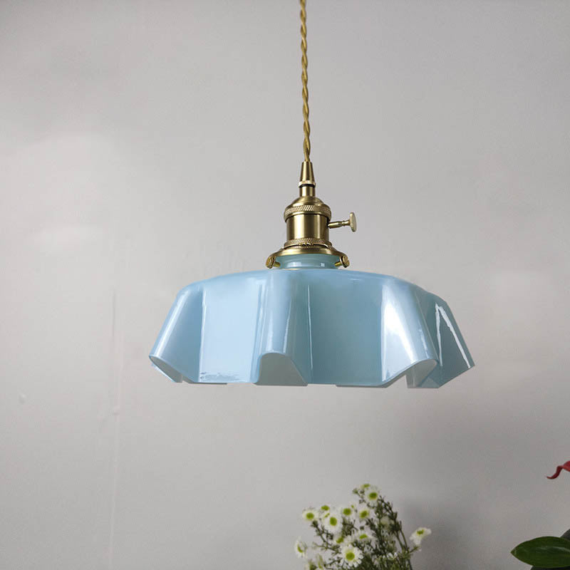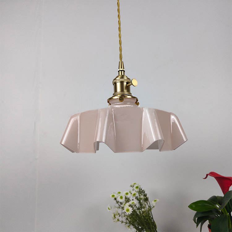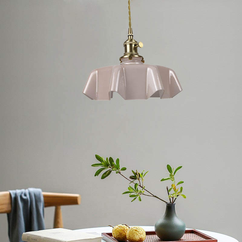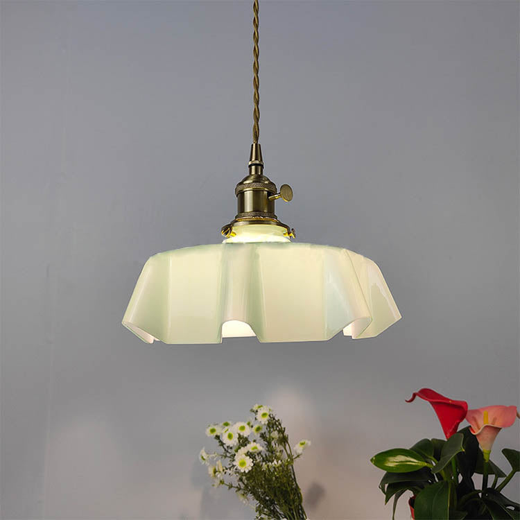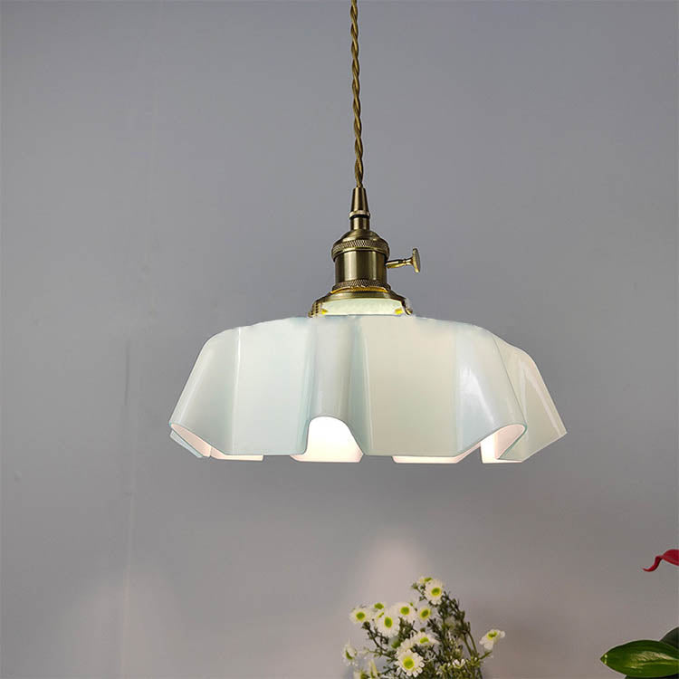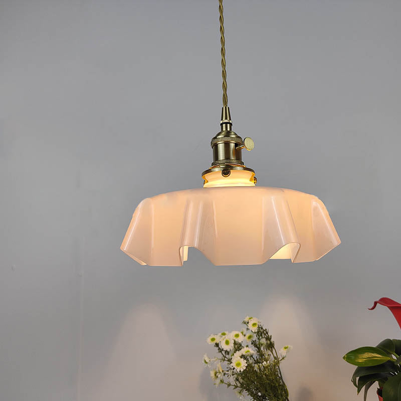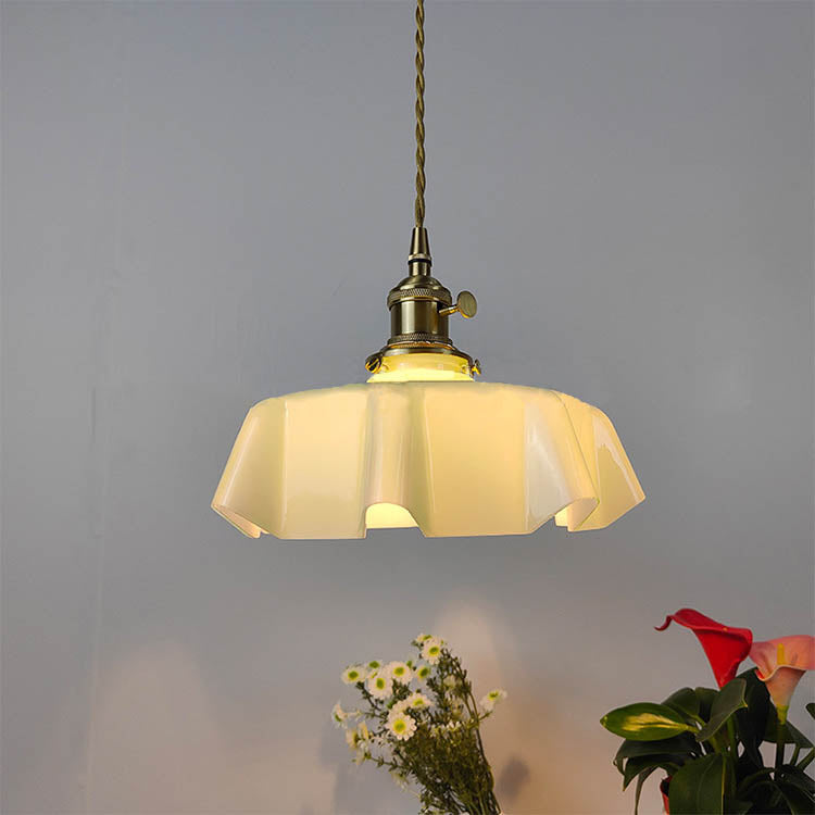 Traditional Japanese Cream Petal Glass 1-Light Pendant Light For Dining Room