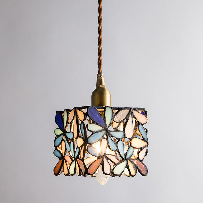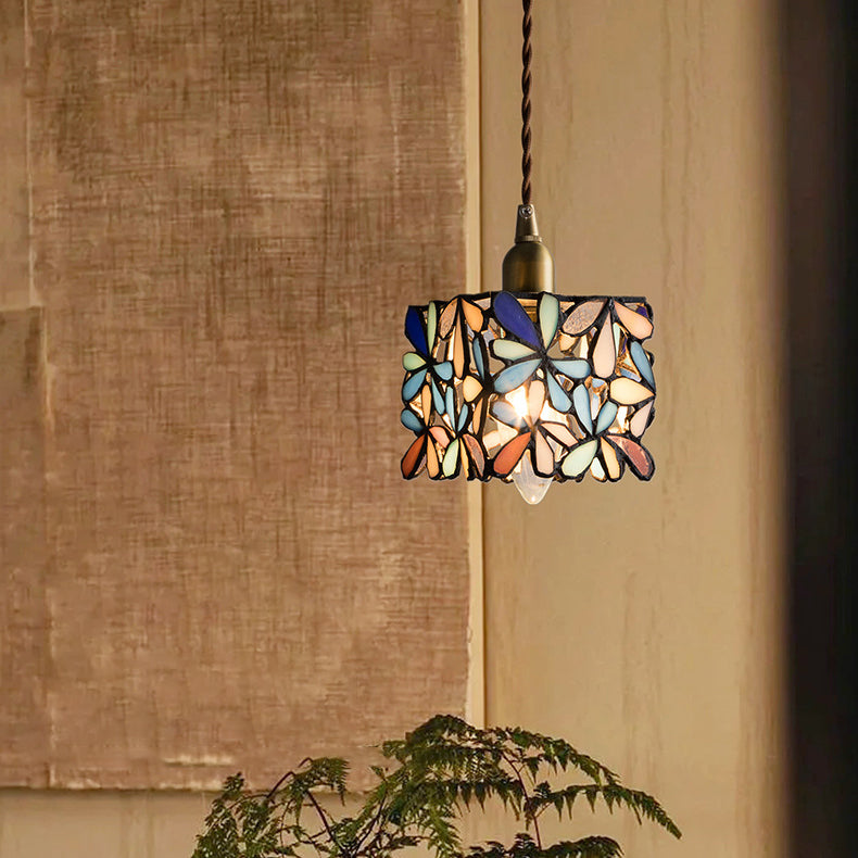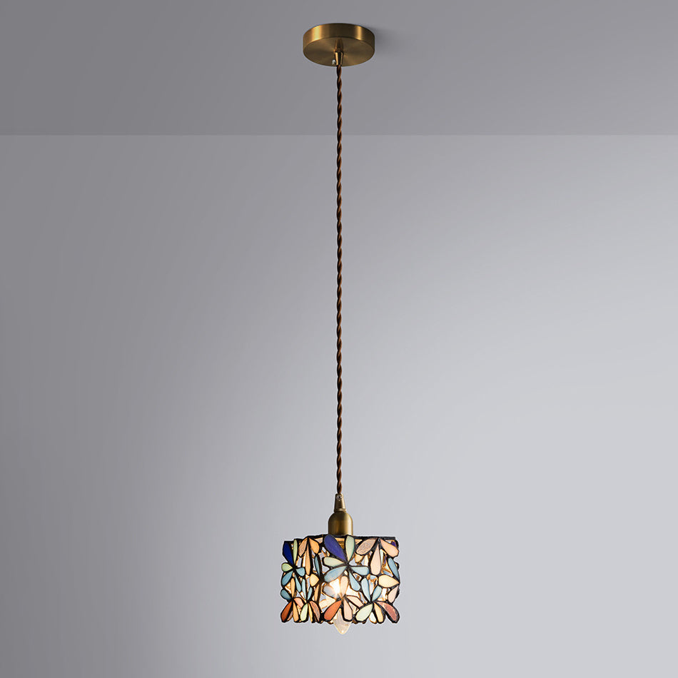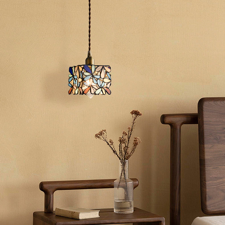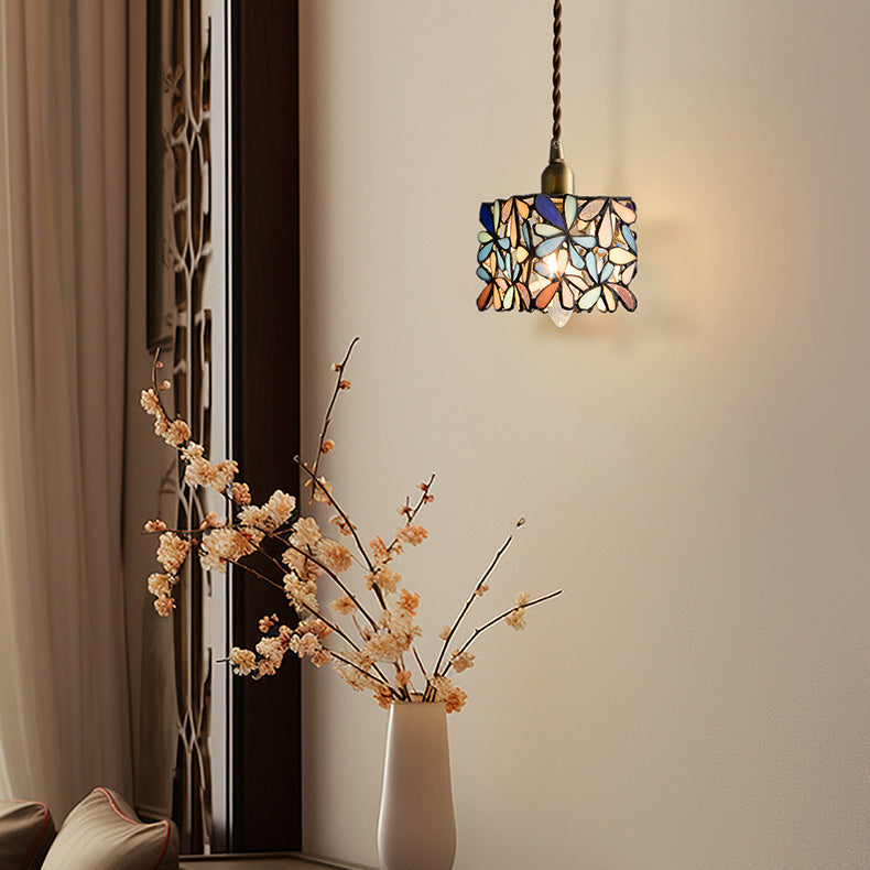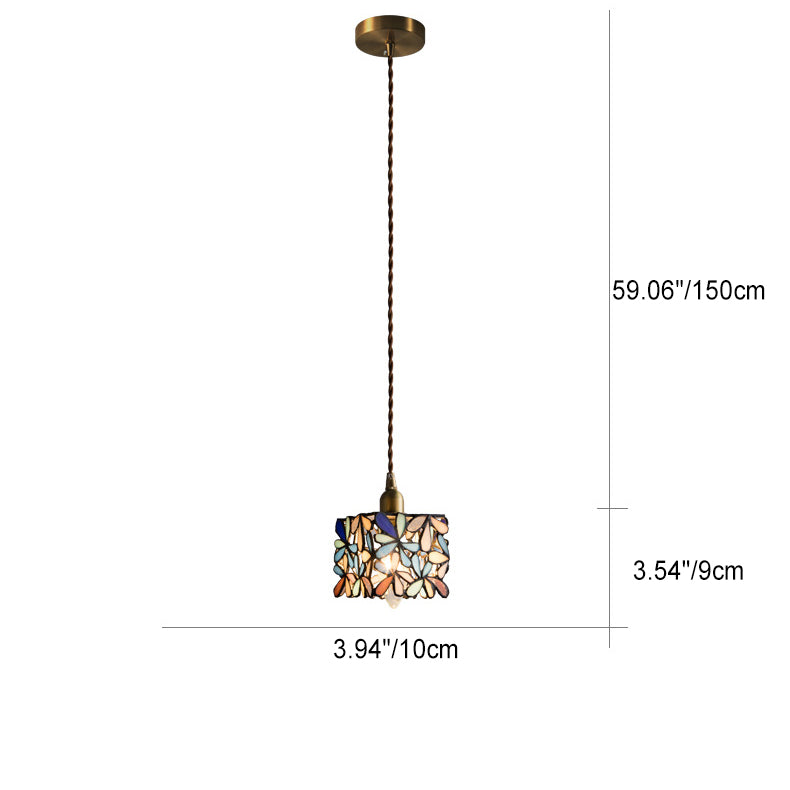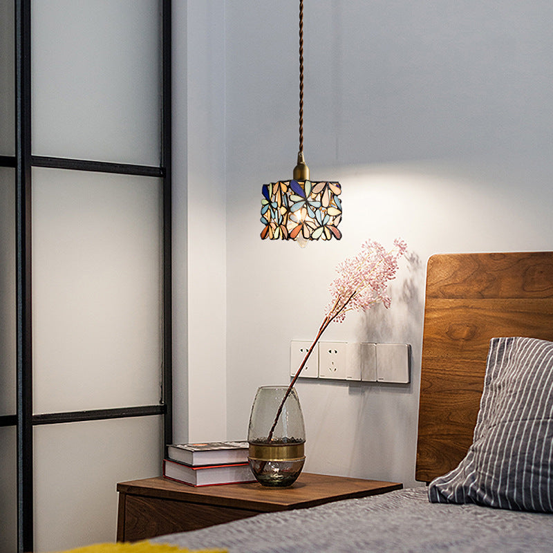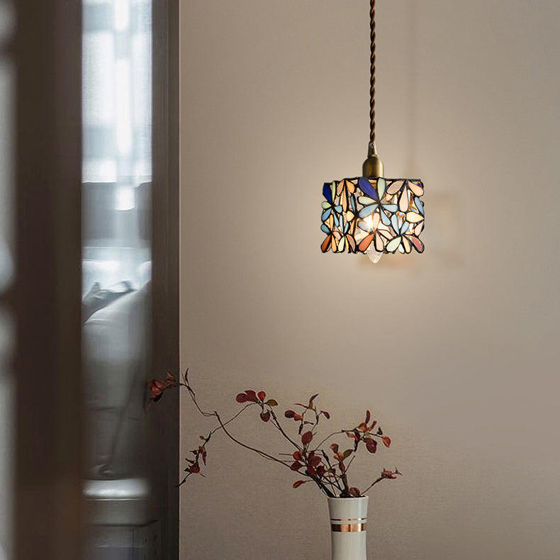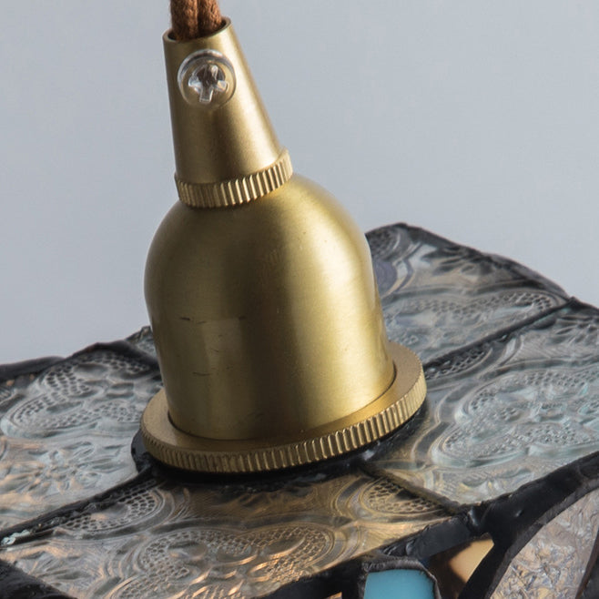 Traditional Japanese Cube Copper Glass 1-Light Pendant Light For Living Room