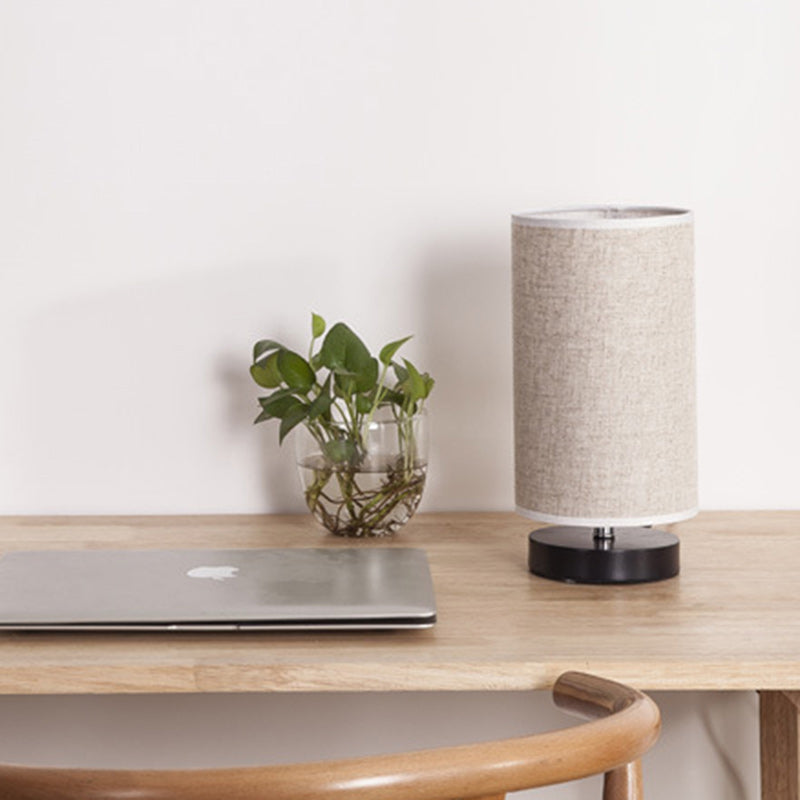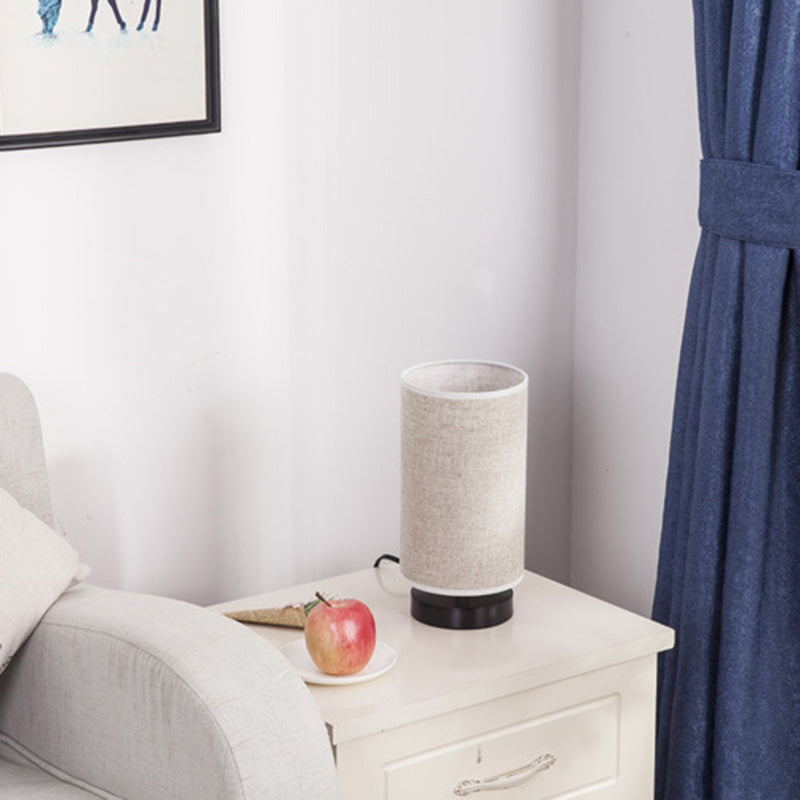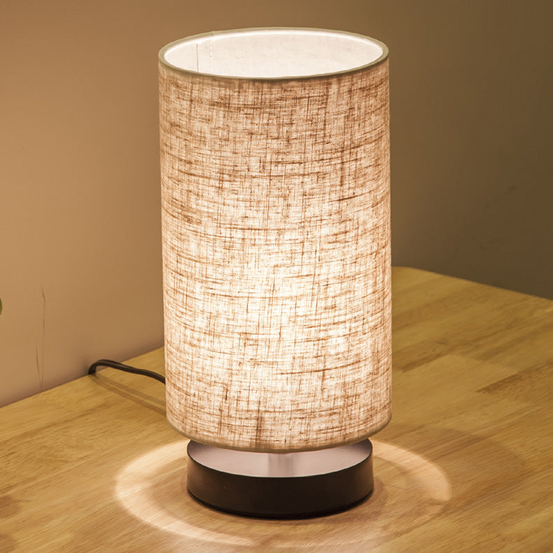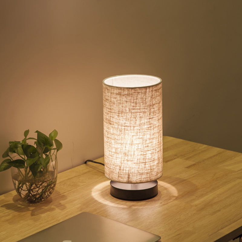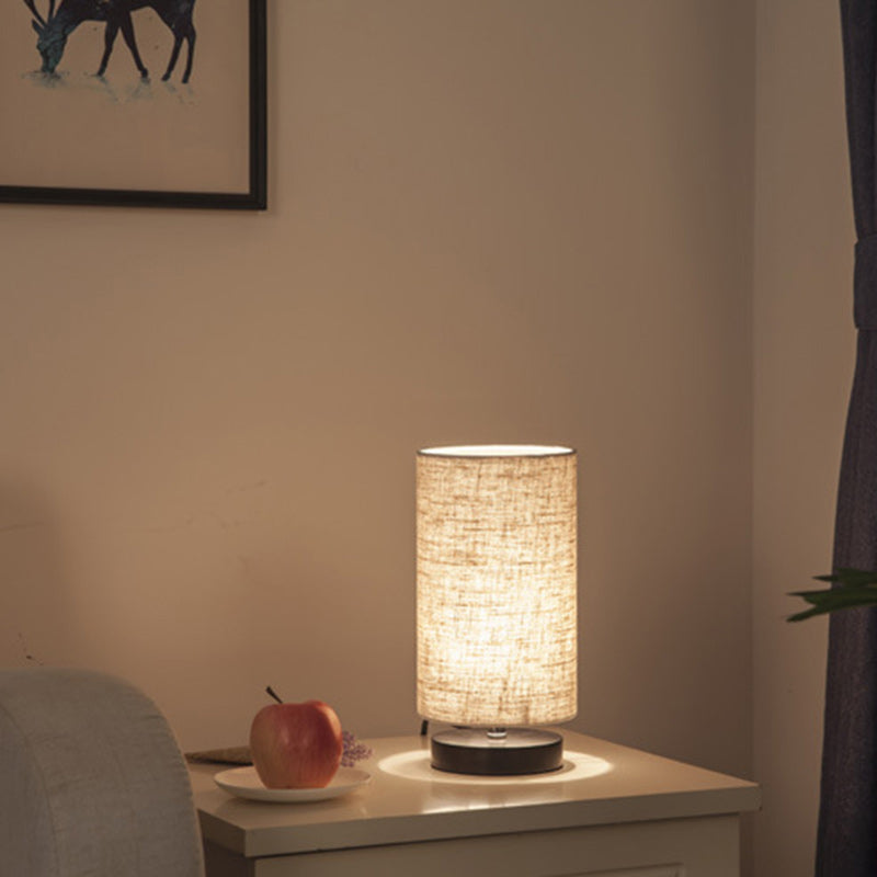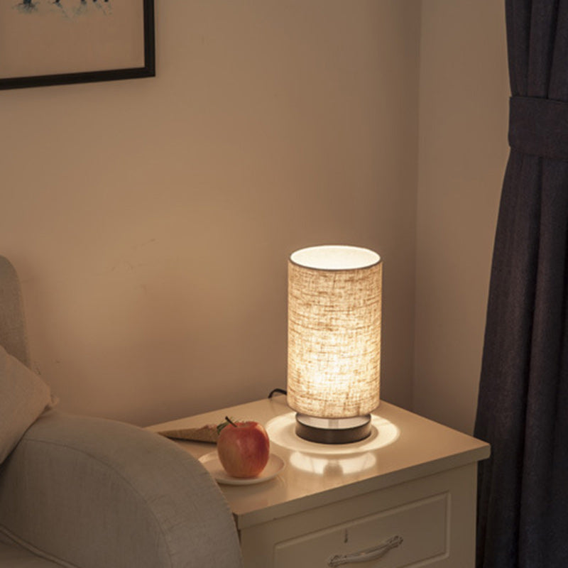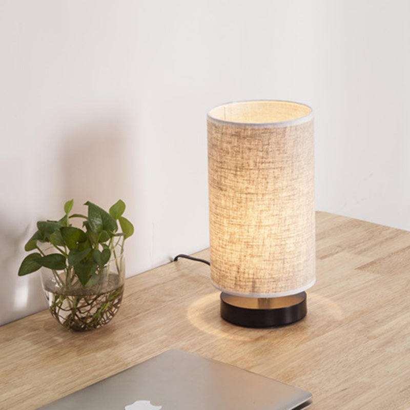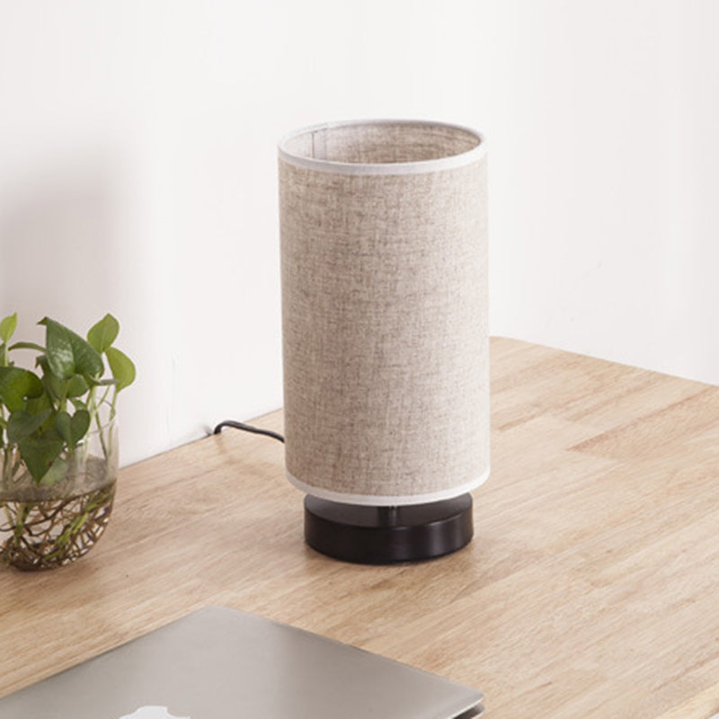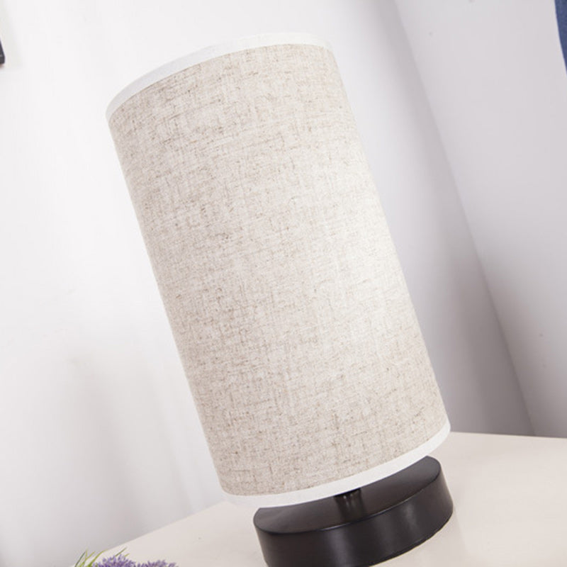Traditional Japanese Cylinder Iron Fabric 1-Light Table Lamp For Living Room