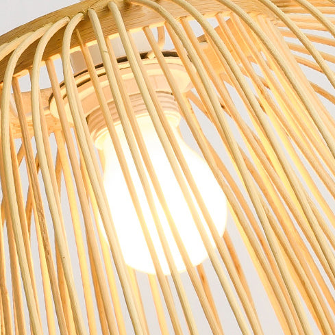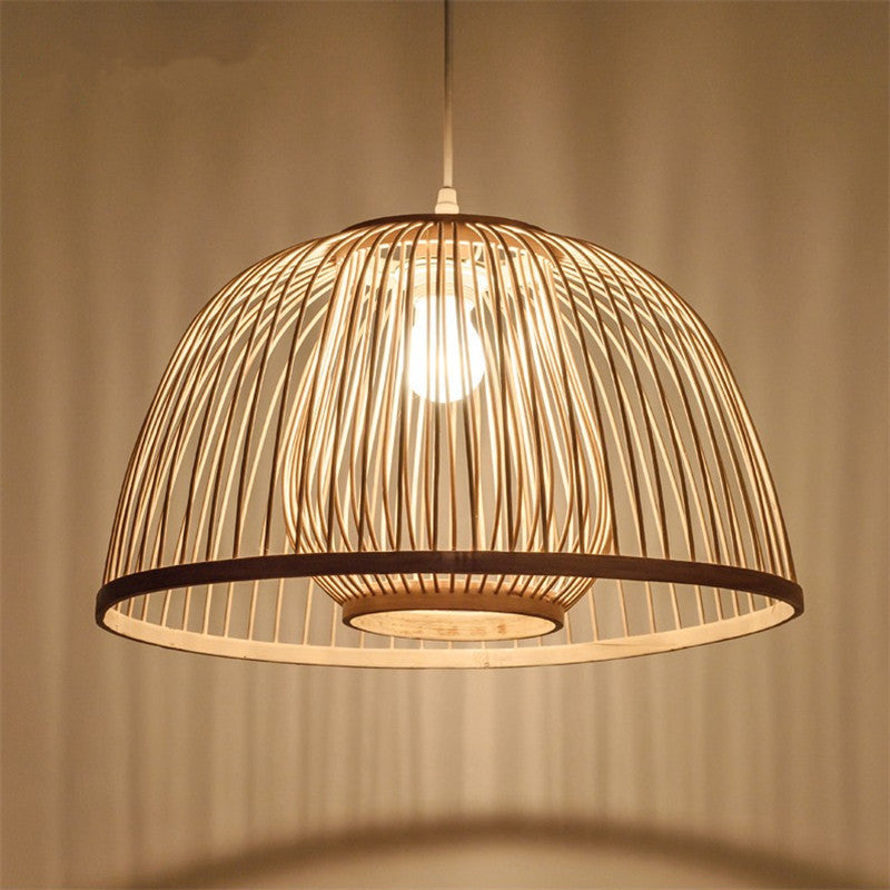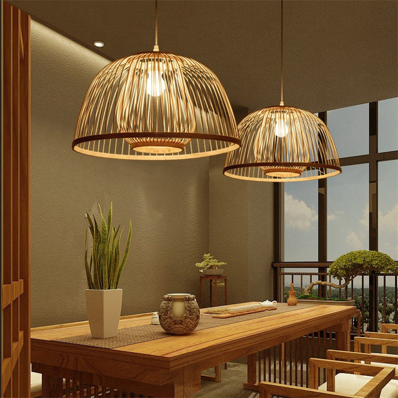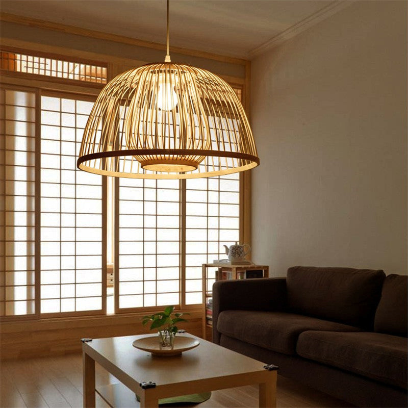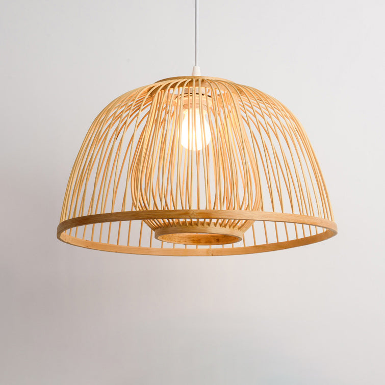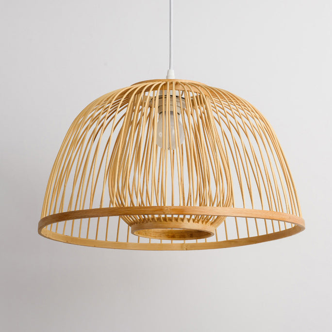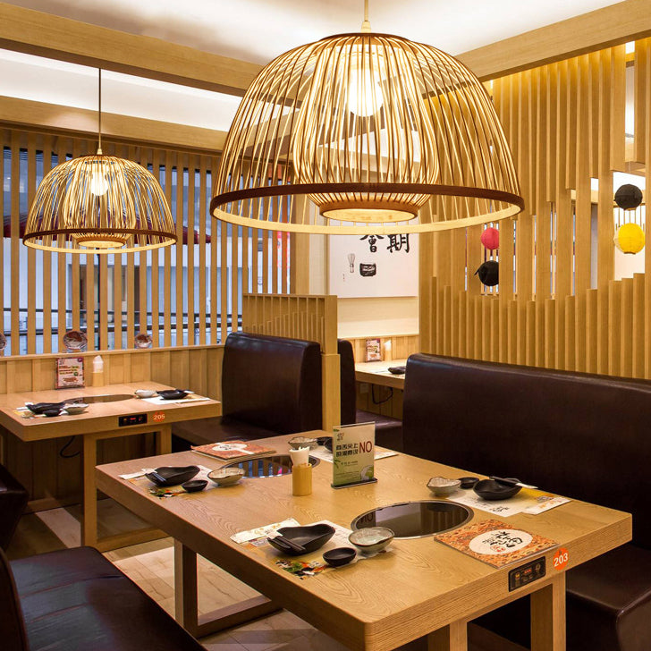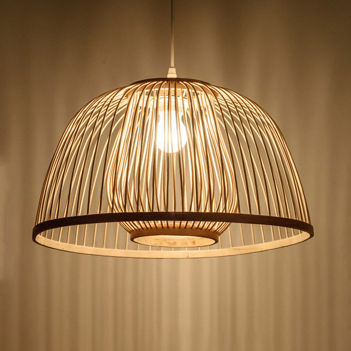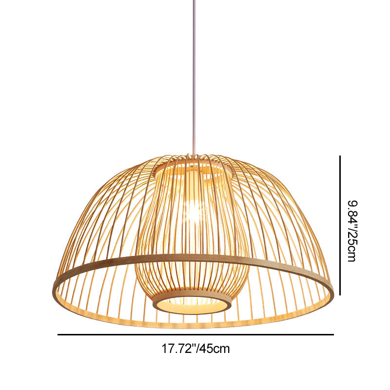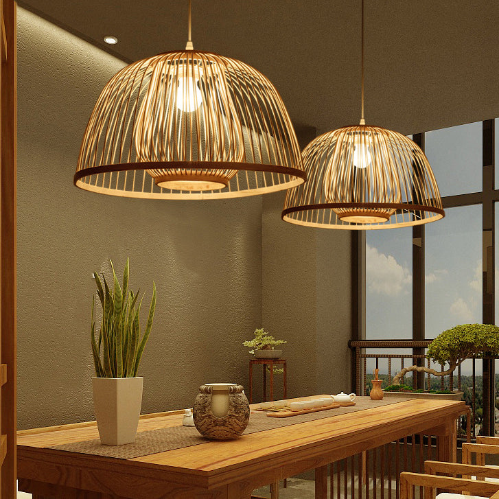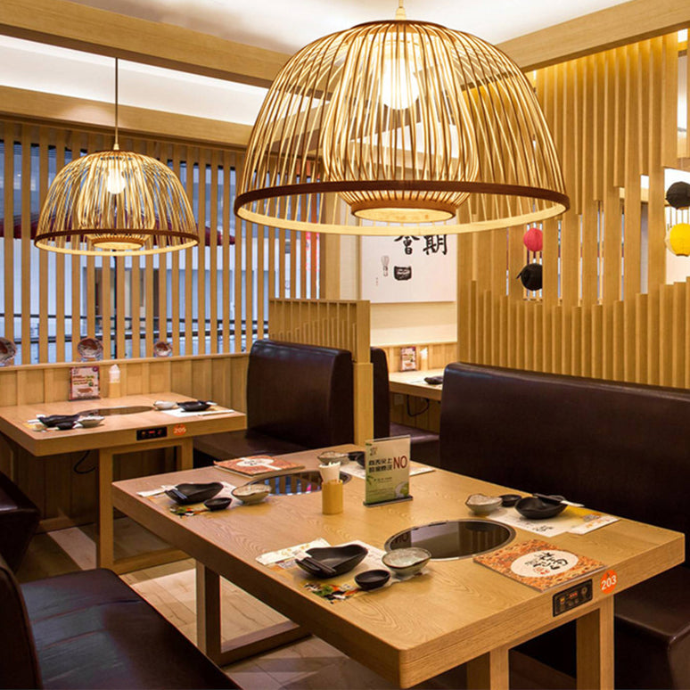 Traditional Japanese Dome Semicircle Bamboo Lampshade 1 - Light Chandelier For Dining Room