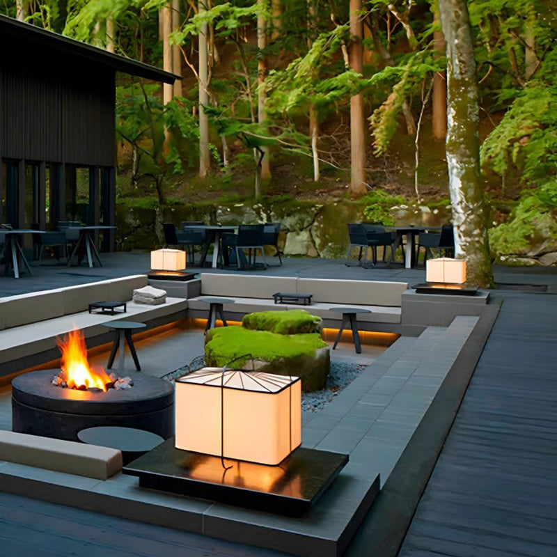 Traditional Japanese Fabric Square Shade 1-Light Outdoor Post Light For Outdoor Patio