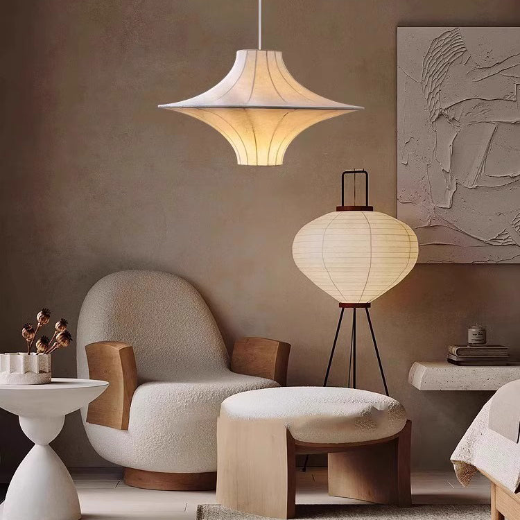 Traditional Japanese Flying Saucer Iron Silk 2/3 Light Pendant Light For Living Room