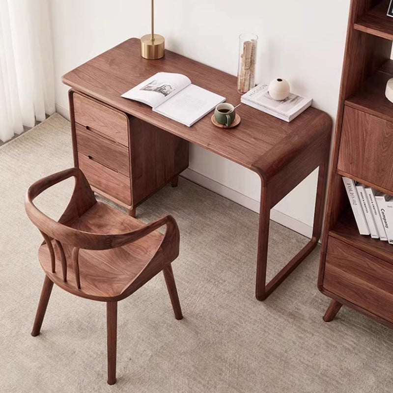 Traditional Japanese Full Walnut Curved Dining Chair Backrest Armrest For Dining Room