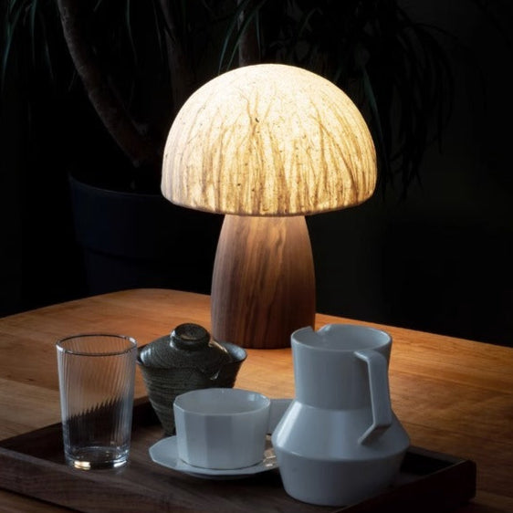 Traditional Japanese Handmade Paper Mushroom Shade Solid Wood 1-Light Table Lamp For Bedroom