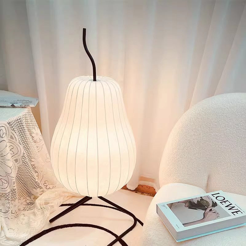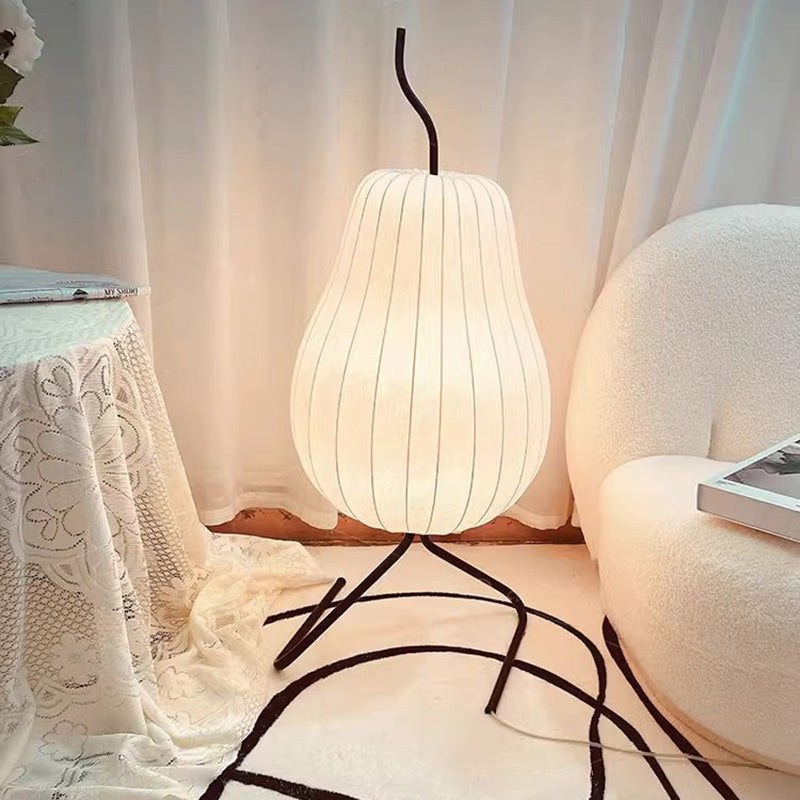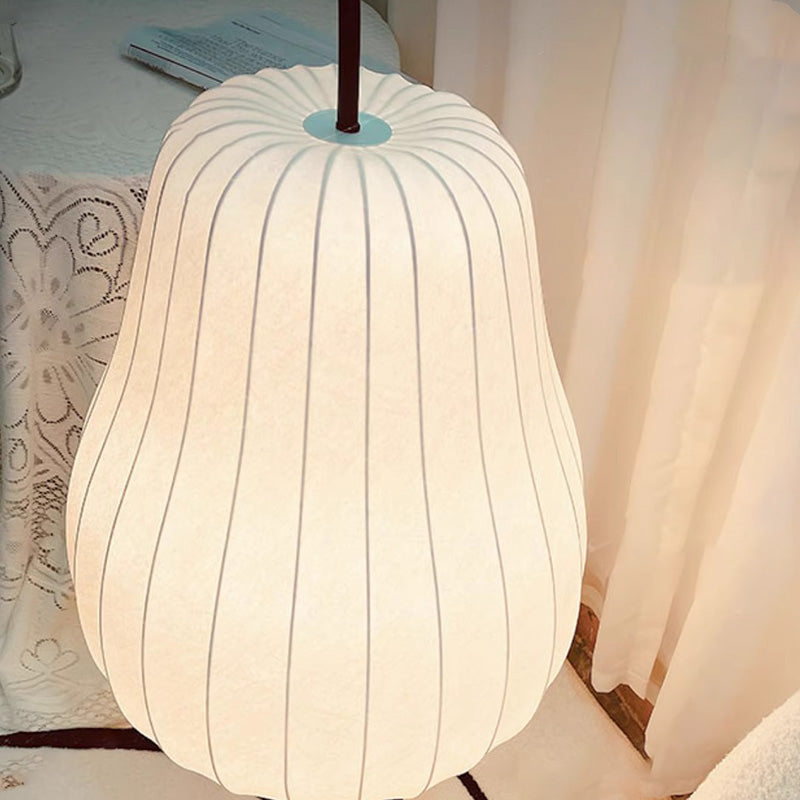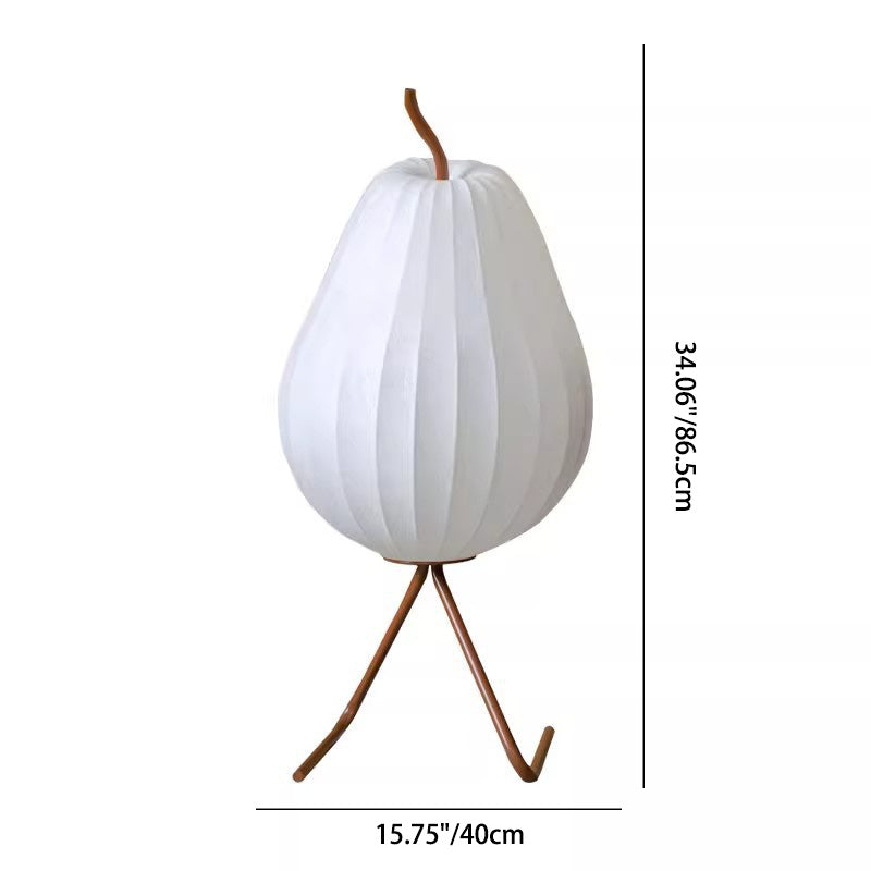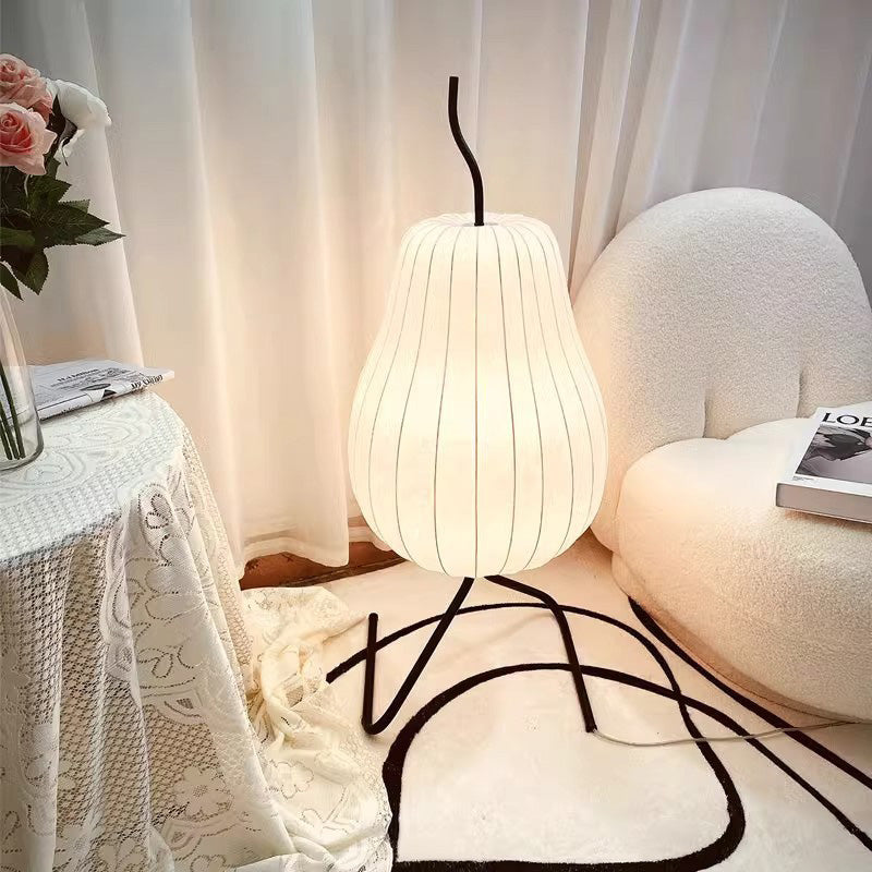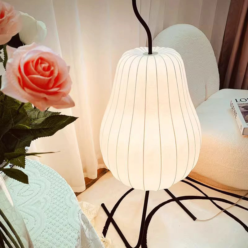 Traditional Japanese Pear Elliptical Iron Fabric 1-Light Standing Floor Lamp For Bedroom
