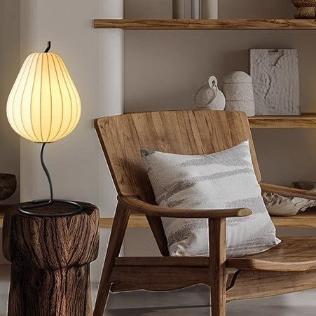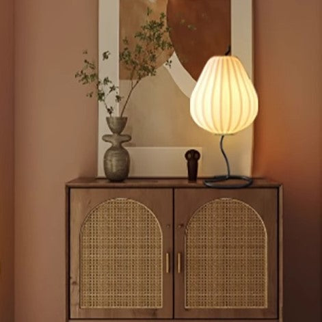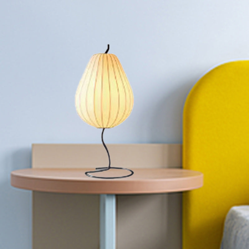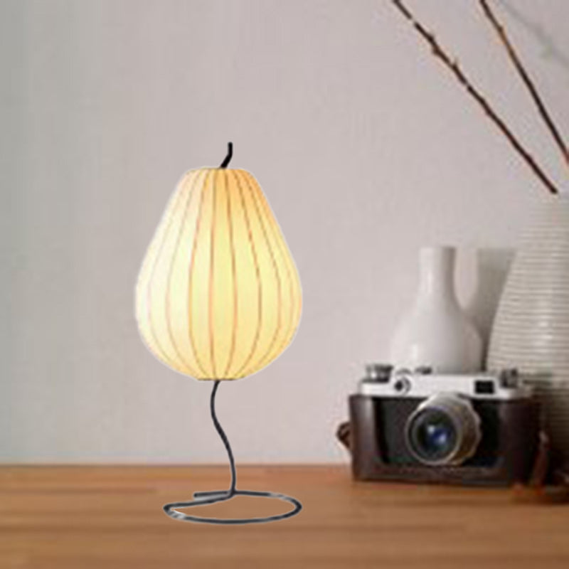 Traditional Japanese Pear Shape Oval Iron Fabric 1-Light Table Lamp For Bedroom