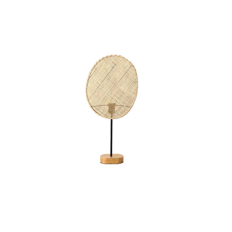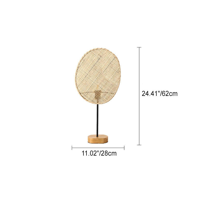 Traditional Japanese Rattan Fan 1-Light Table Lamp For Bedroom