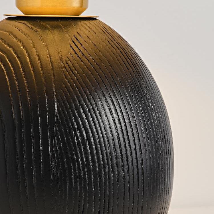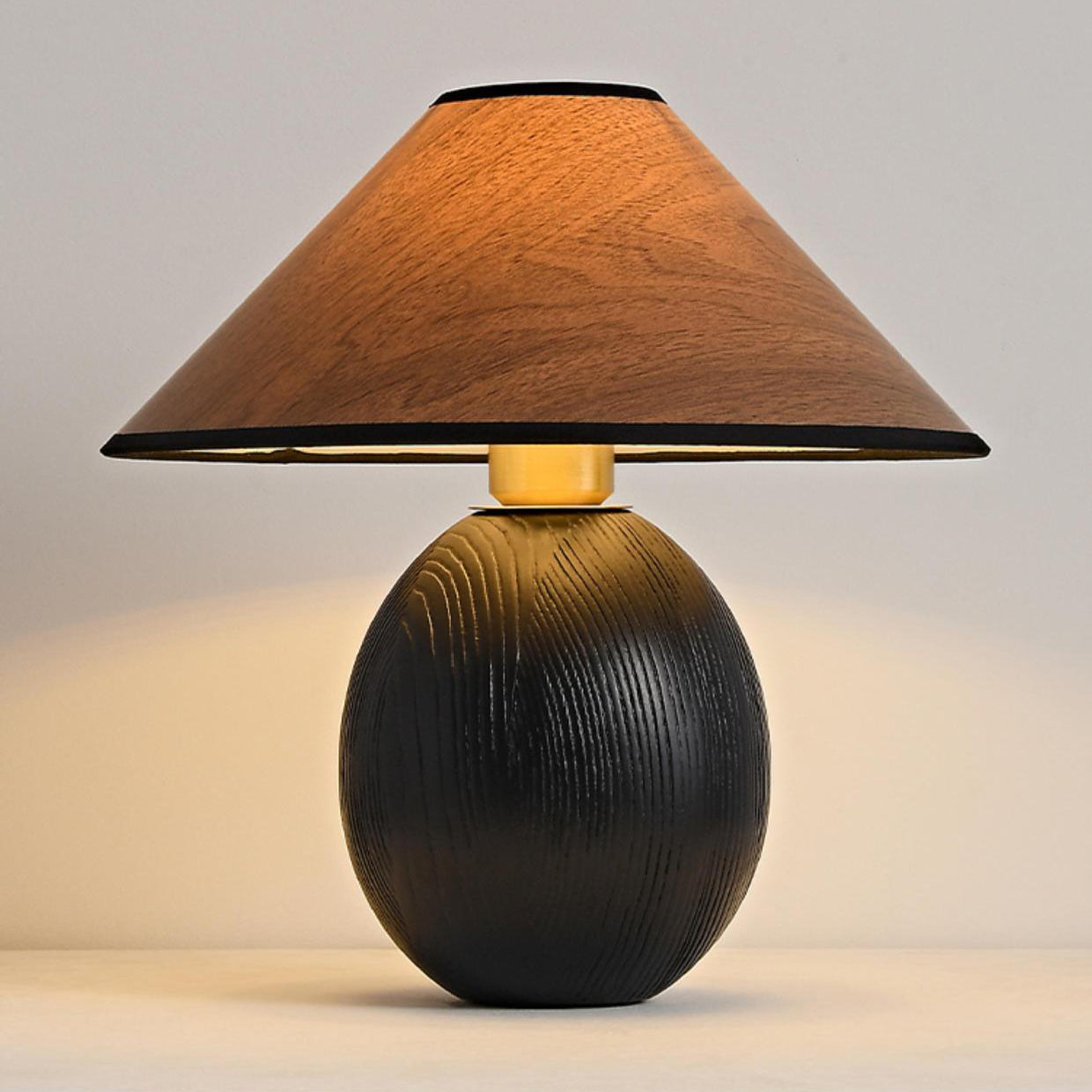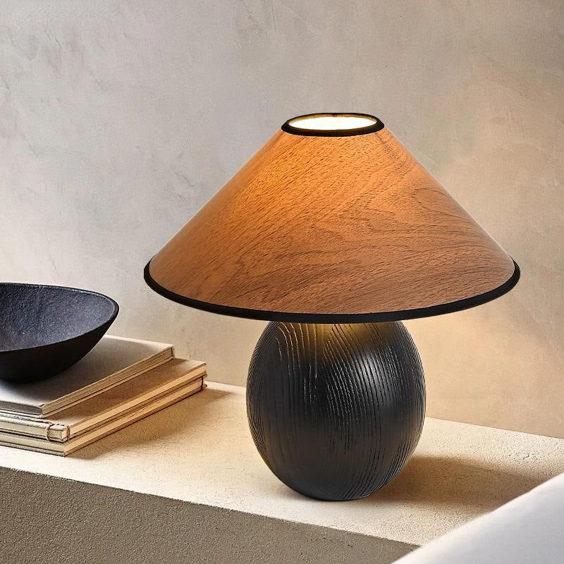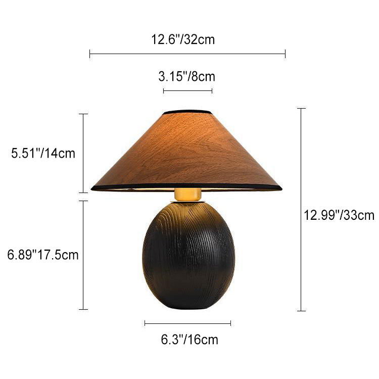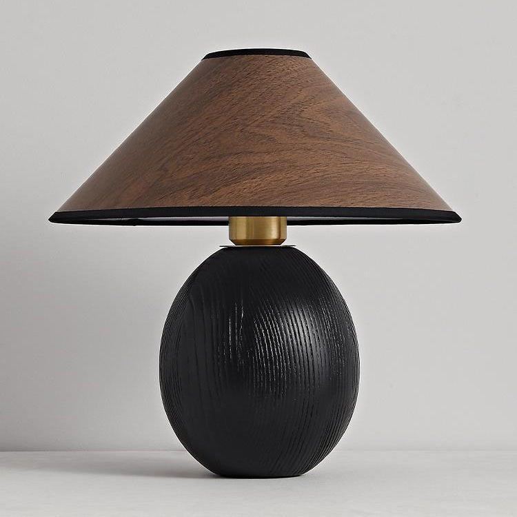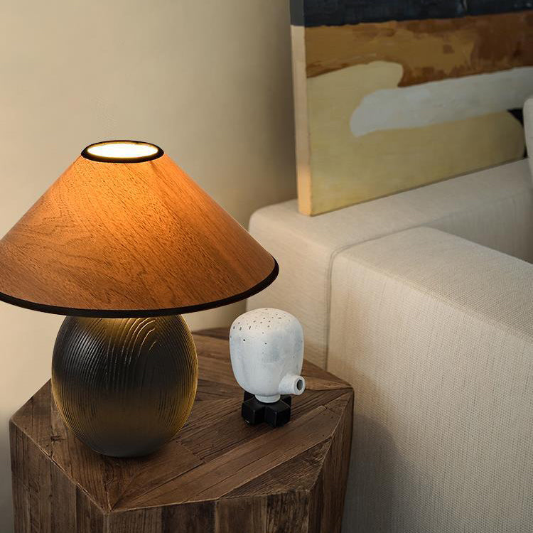 Traditional Japanese Round Trapezoidal Solid Wood Fabric 1-Light Table Lamp For Bedroom