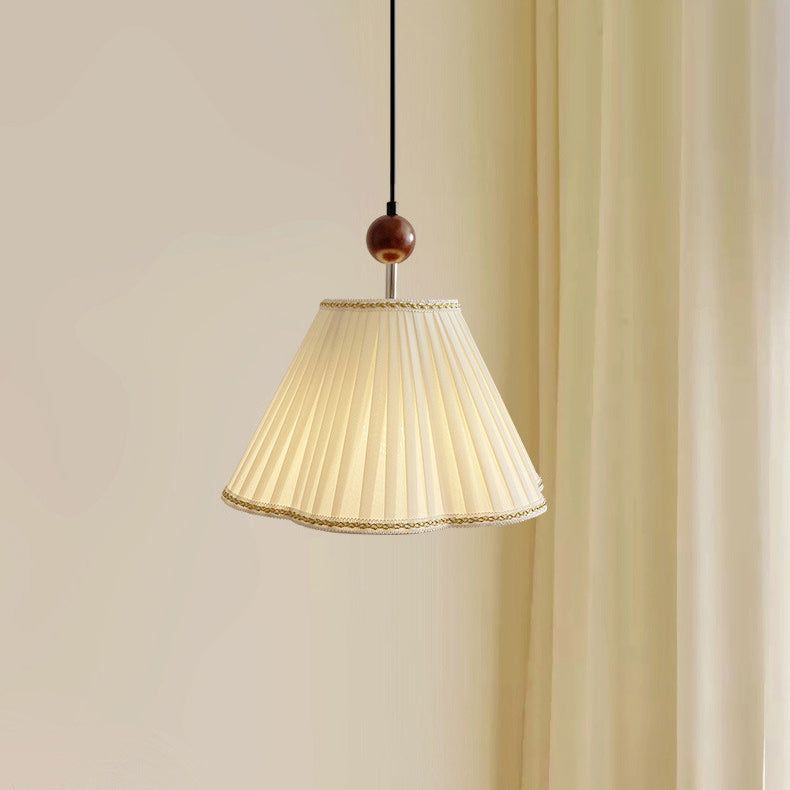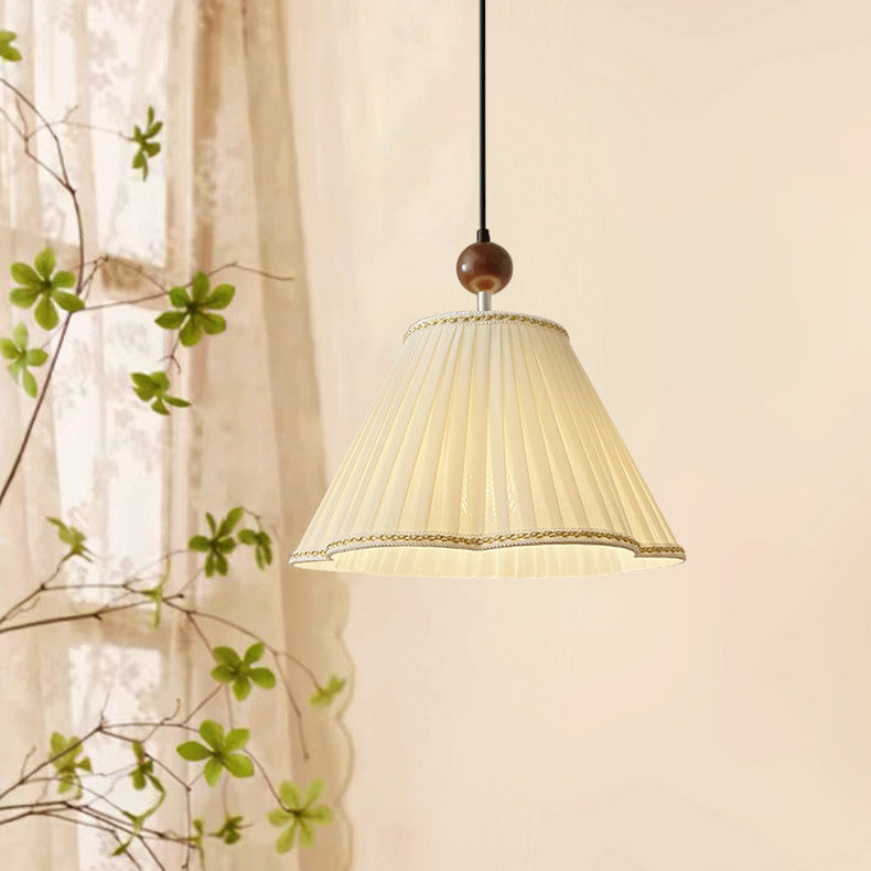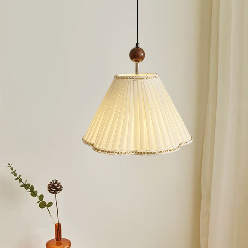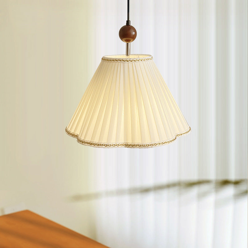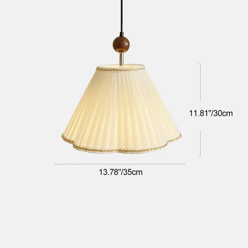 Traditional Japanese Skirt Shape Fabric Lampshade Solid Wood 1 - Light Pendant Light For Living Room