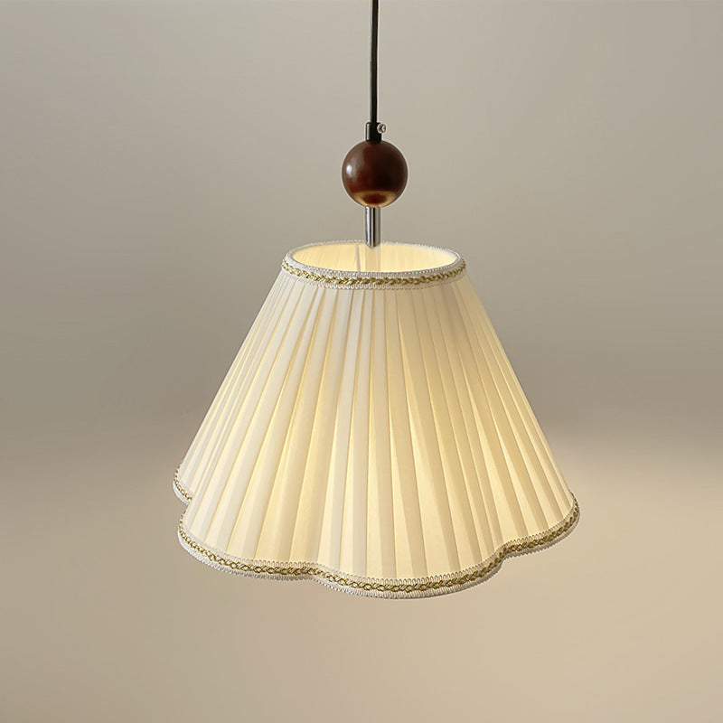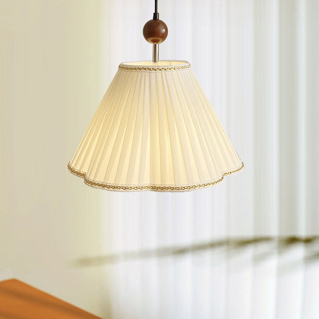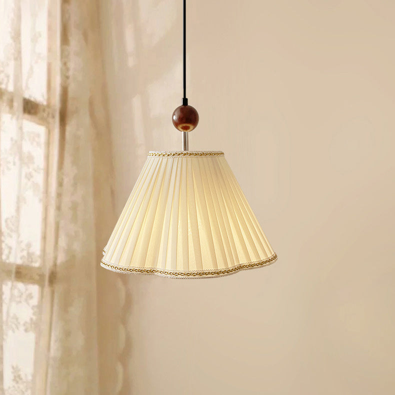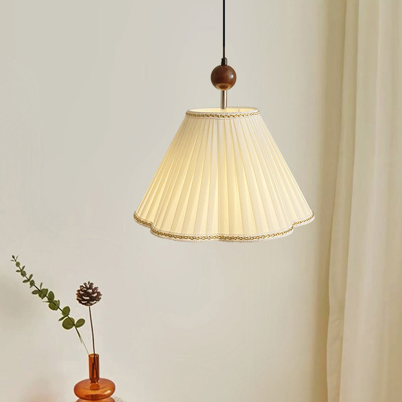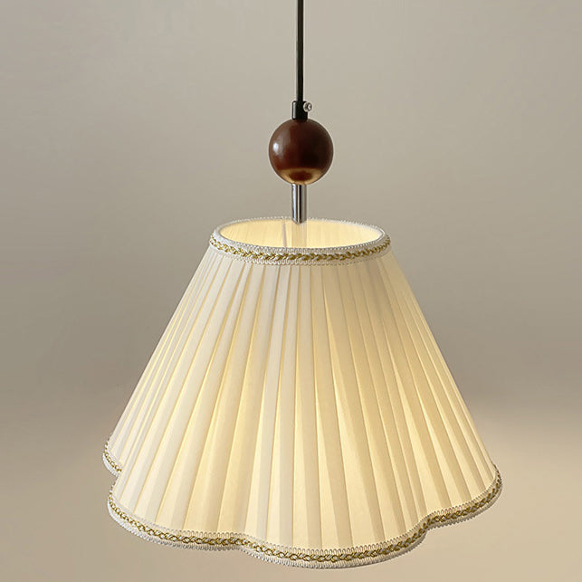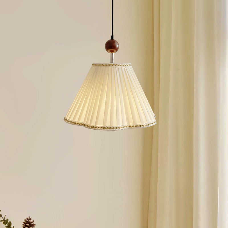 Traditional Japanese Skirt Shape Fabric Lampshade Solid Wood 1 - Light Pendant Light For Living Room