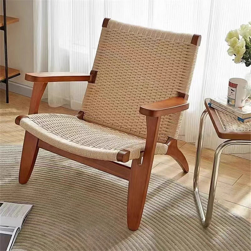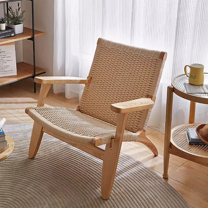 Traditional Japanese Square Ash Wood Rope Dining Chair Backrest Armrest For Dining Room