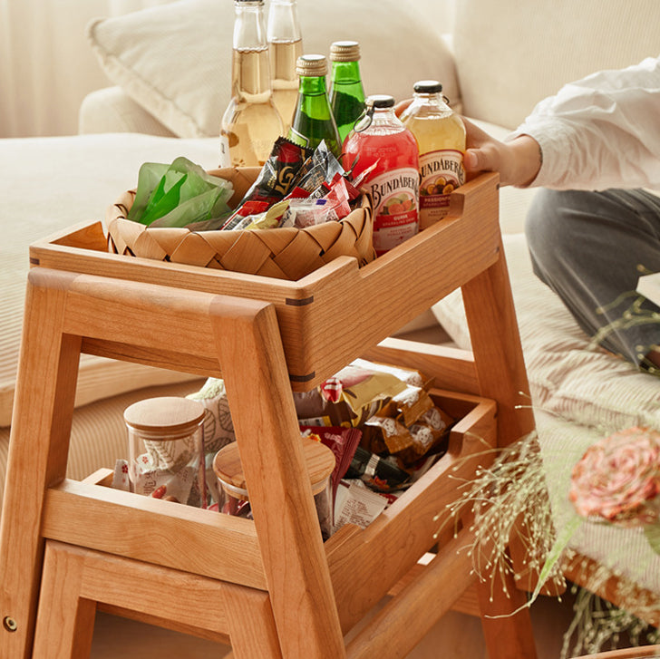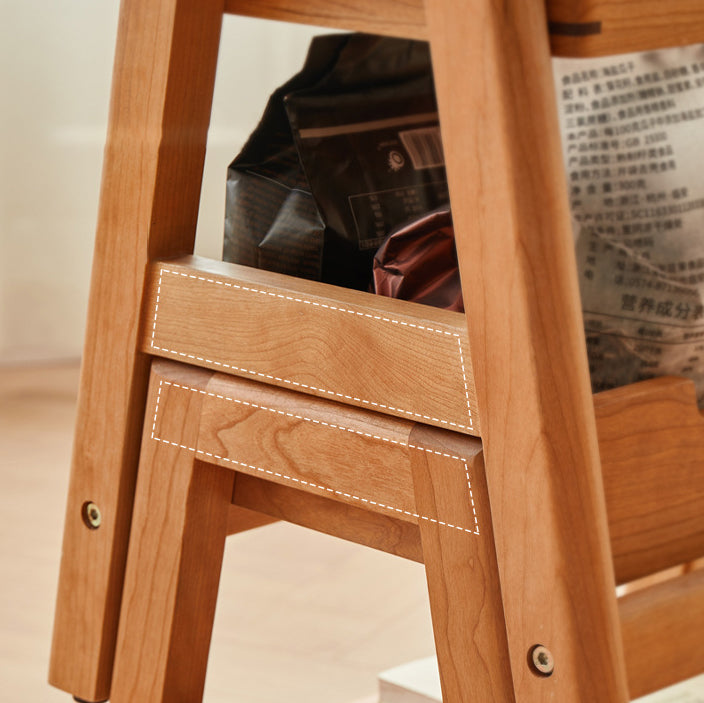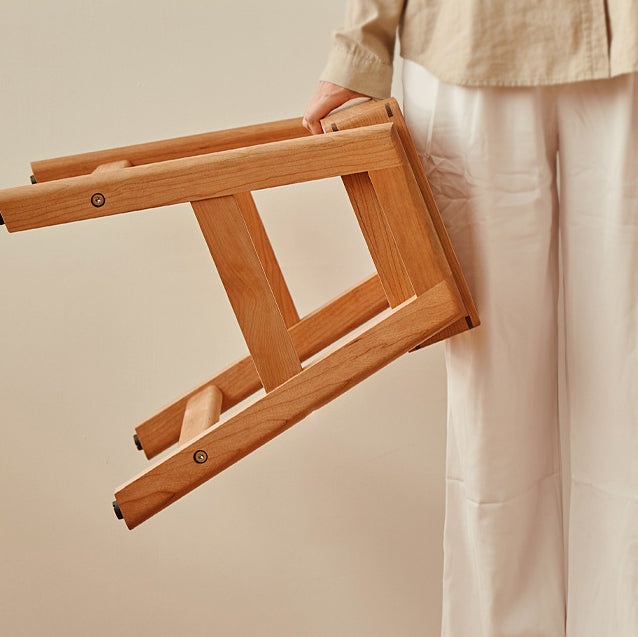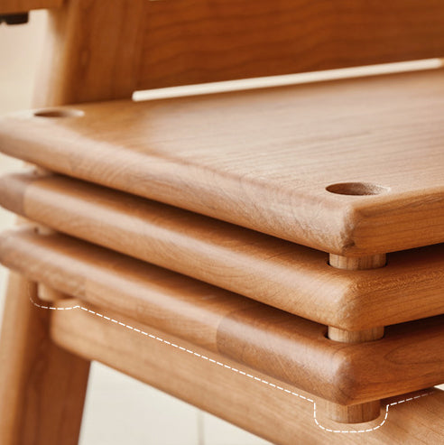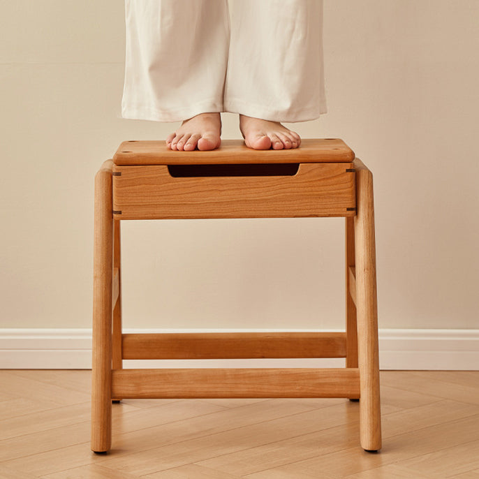 Traditional Japanese Square Cherry Wood Stackable Storage Dining Chair Backless Armless For Dining Room
