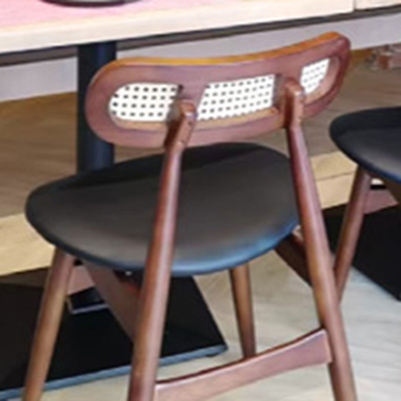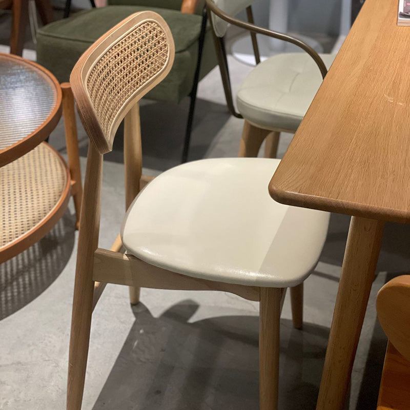 Traditional Japanese Square Faux Leather Upholstered Wood Splayed Legs Dining Chair Backrest For Dining Room