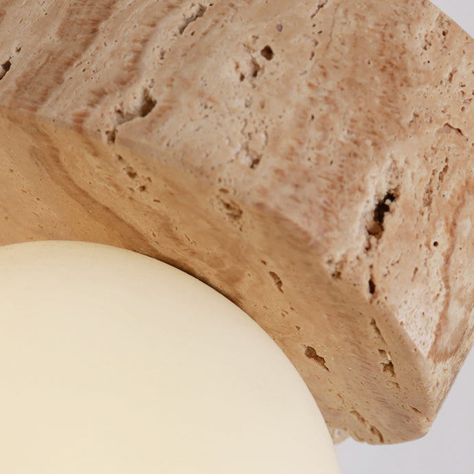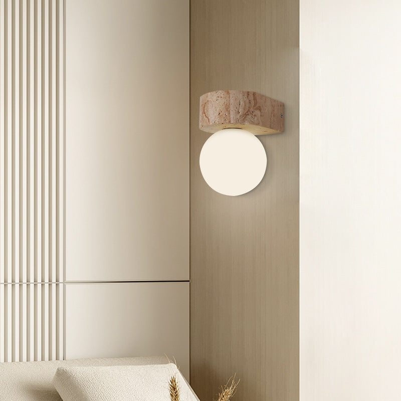 Traditional Japanese Stone Wooden Globe 1-Light Wall Sconce Lamp For Bedroom