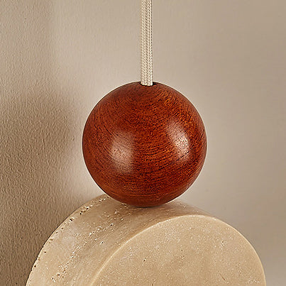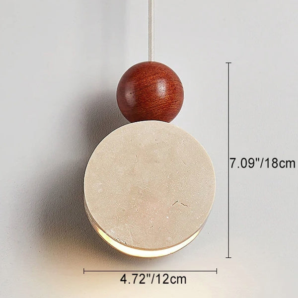 Traditional Japanese Travertine Shade Wood Round Ball 1-Light Pendant Light For Living Room