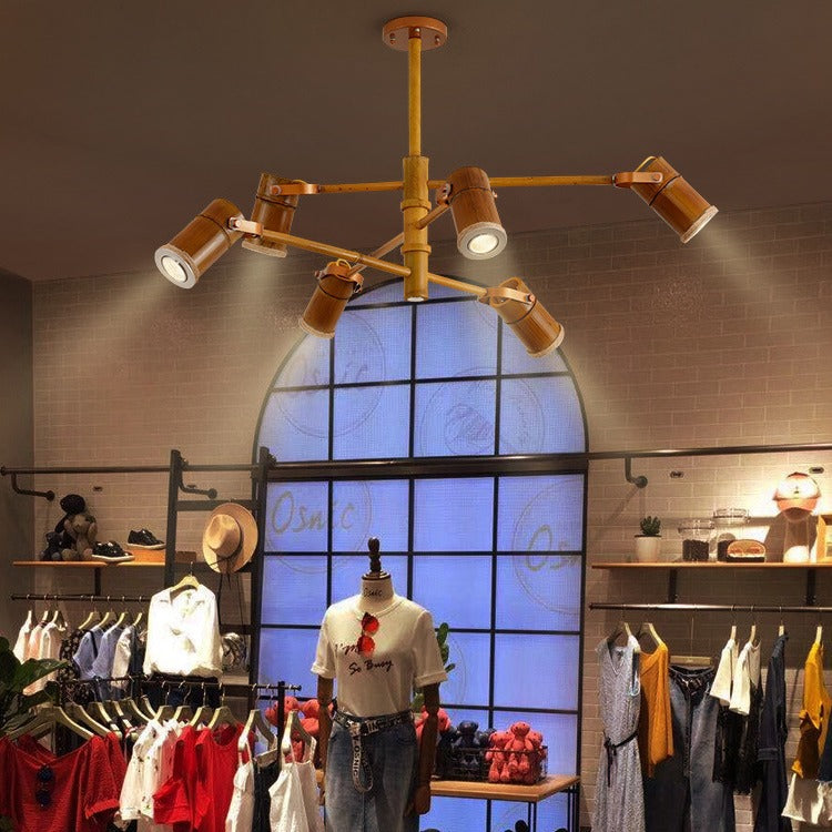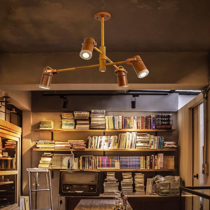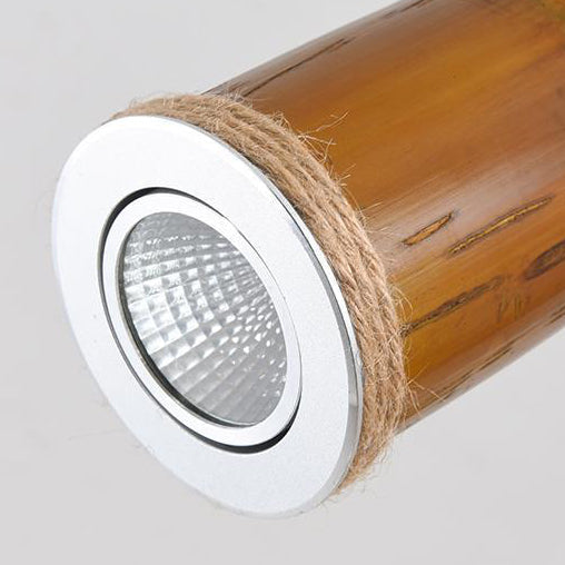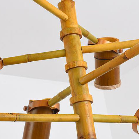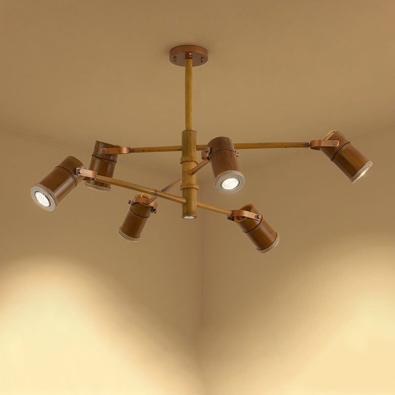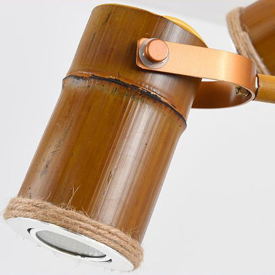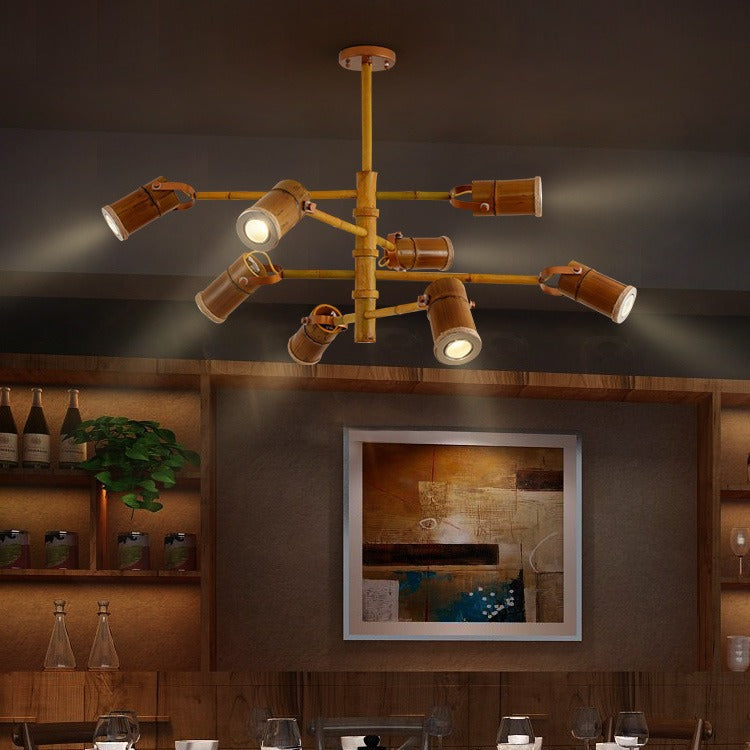 Traditional Rustic Creative Bamboo Tube Shade Iron LED Spotlight Chandelier For Living Room