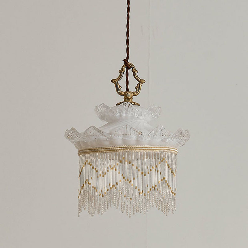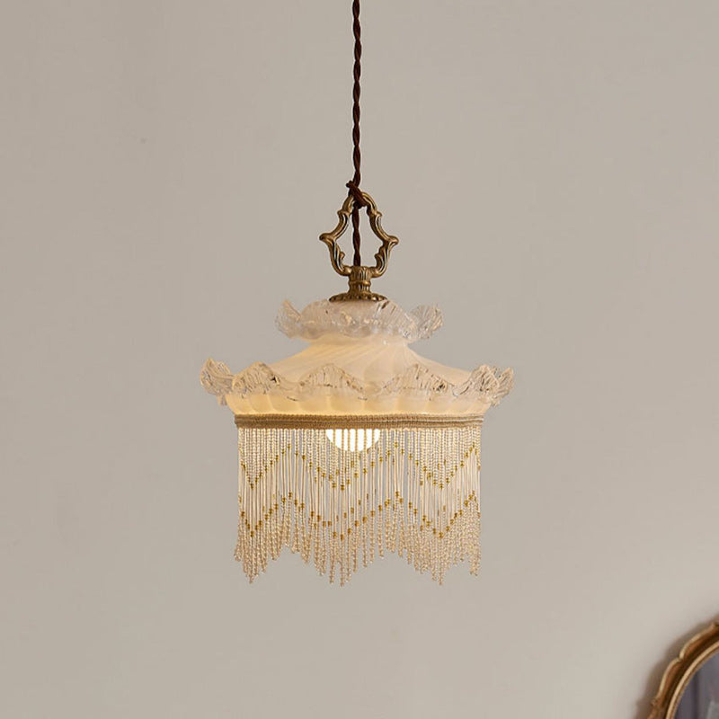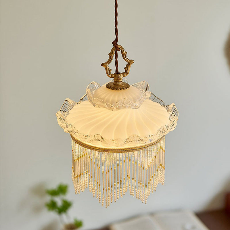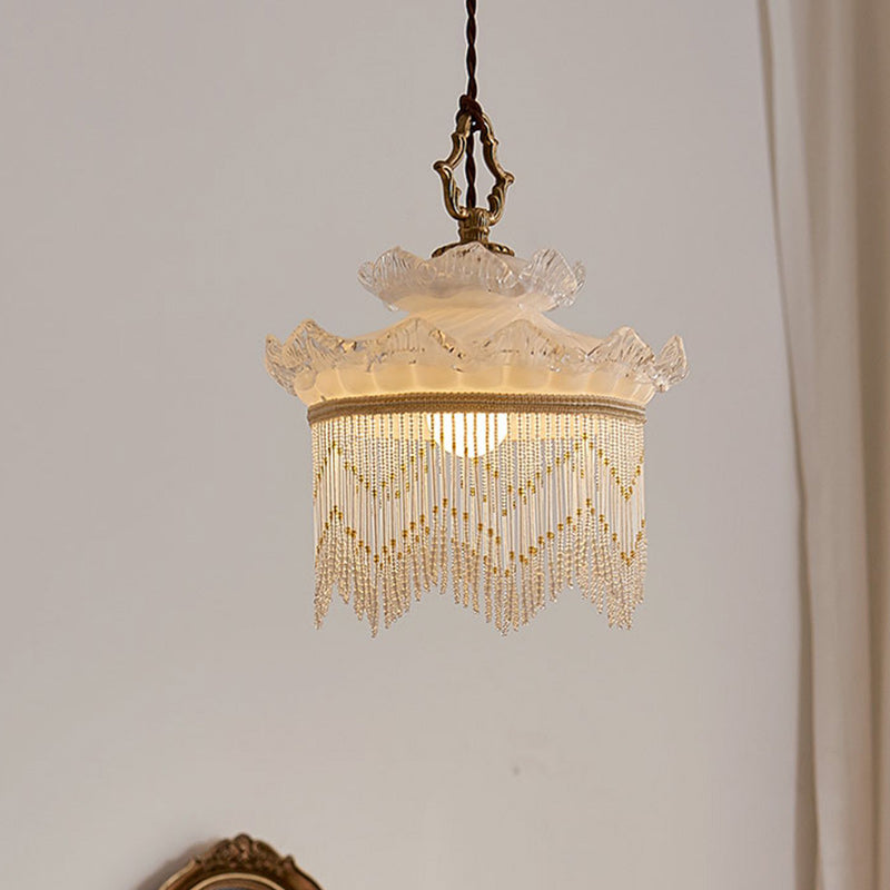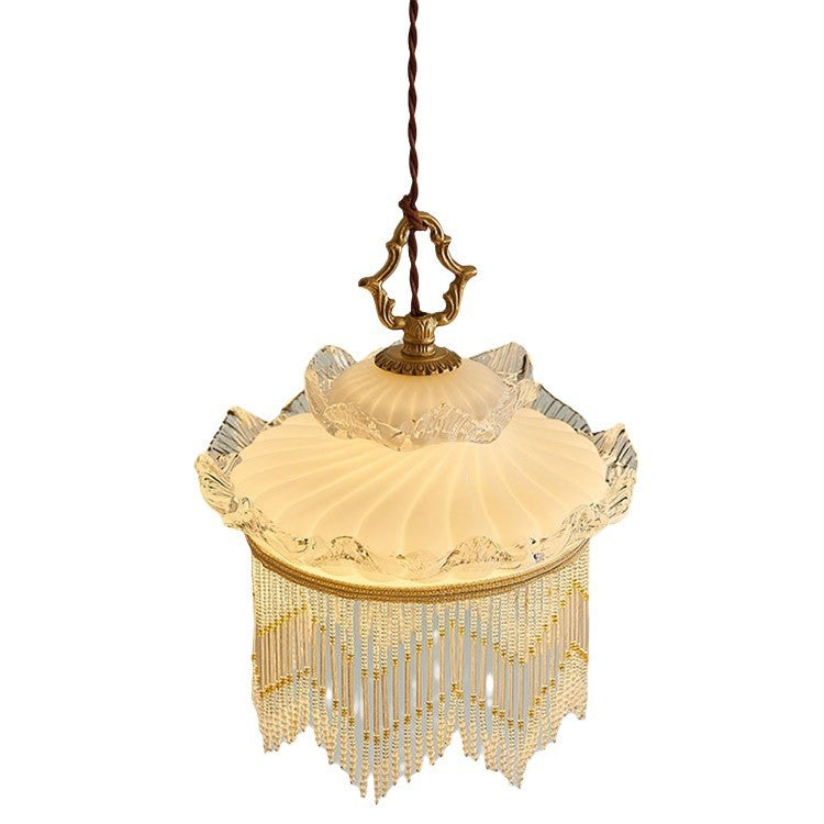 Traditional Rustic Crown Tassel Dome Glass Copper 1-Light Pendant Light For Bedroom