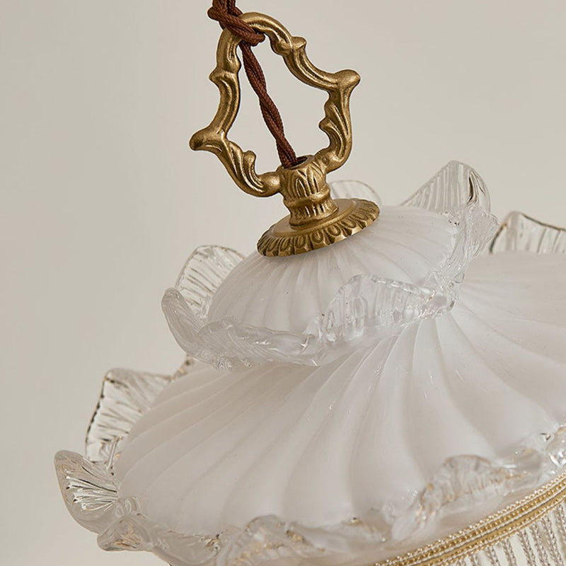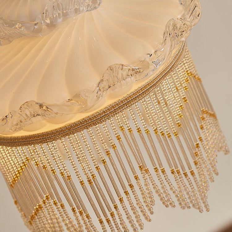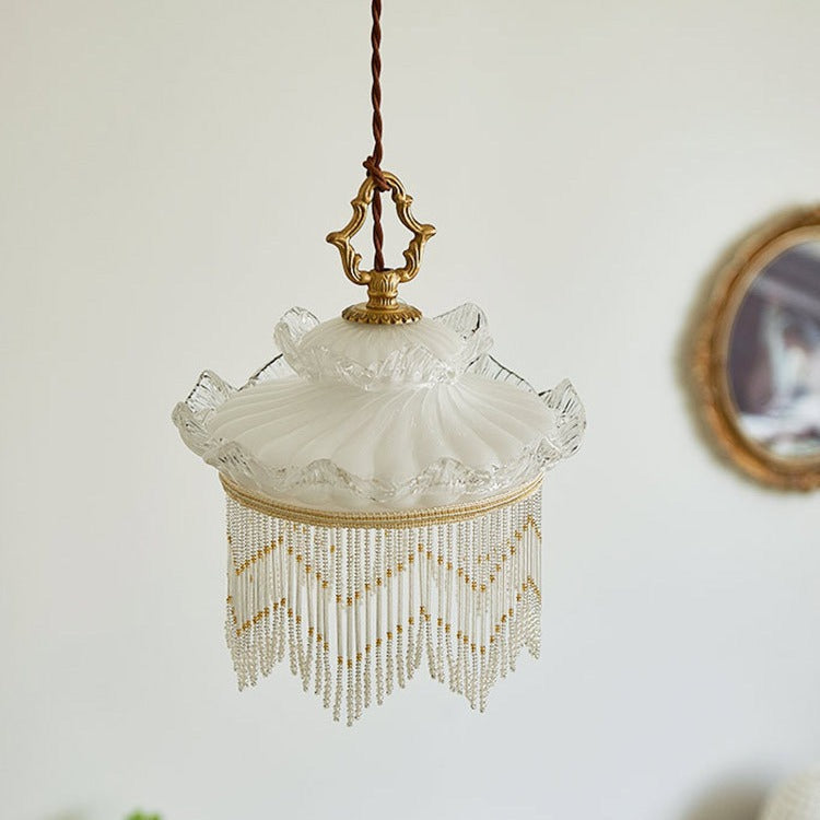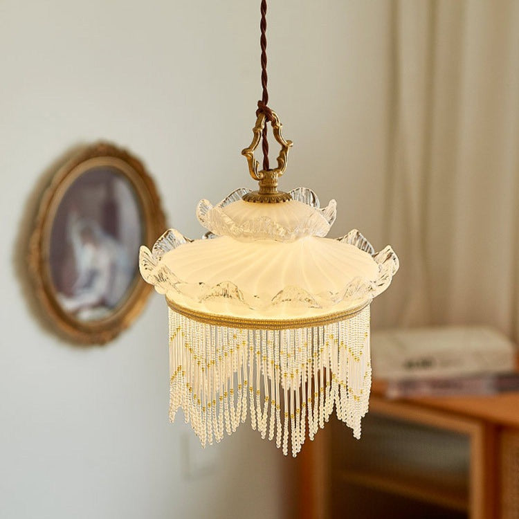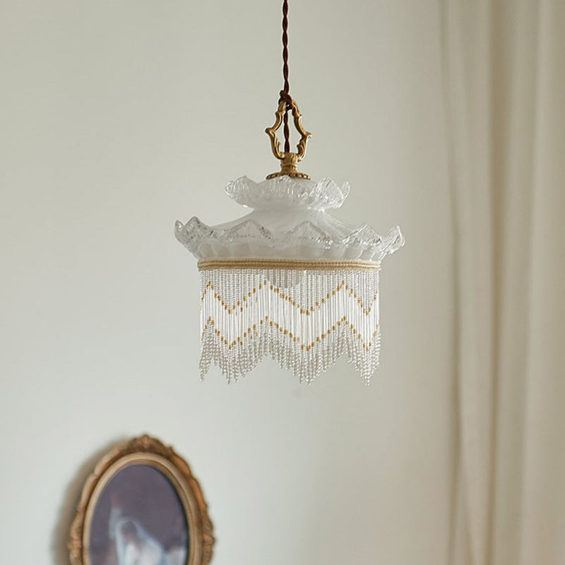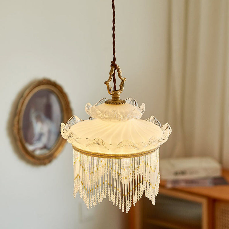 Traditional Rustic Crown Tassel Dome Glass Copper 1-Light Pendant Light For Bedroom
