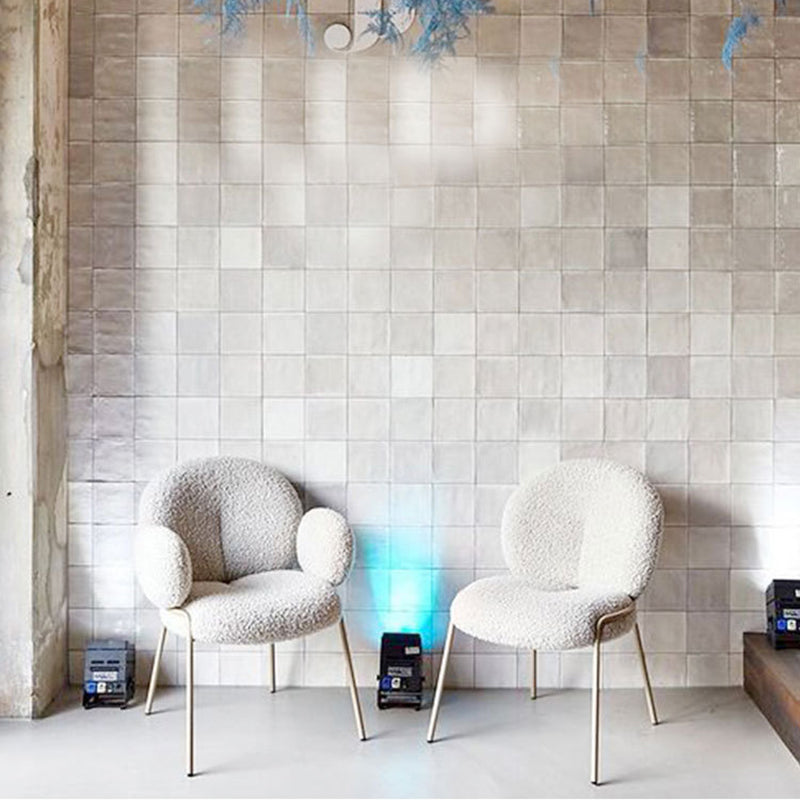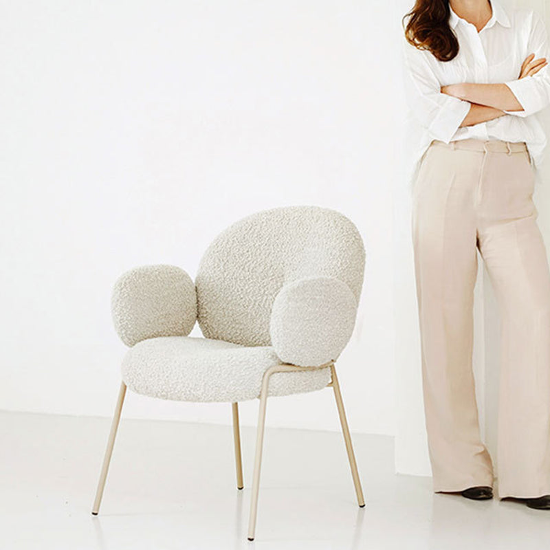 Traditional Rustic Flat Round Curved Lambswool Metal Dining Chair Backrest For Dining Room