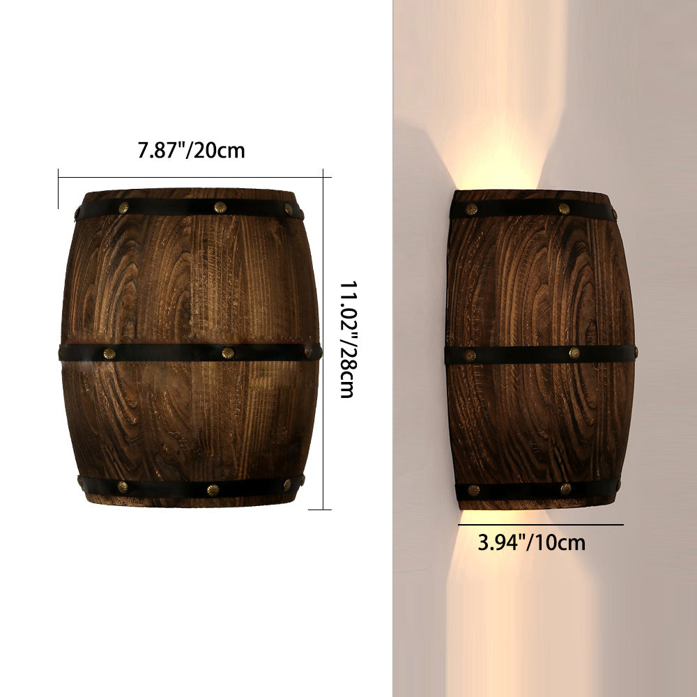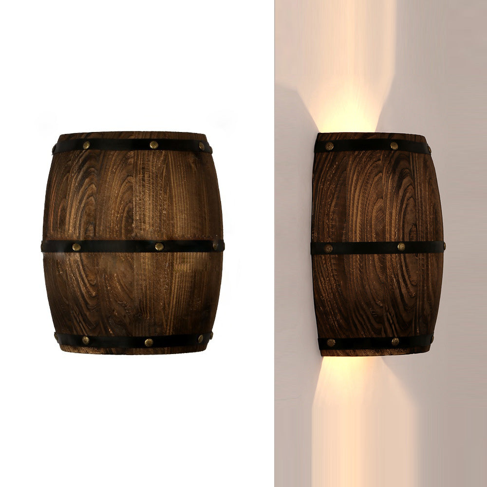 Traditional Rustic Wood Wine Barrel Design 1-Light Wall Sconce Lamp For Dining Room