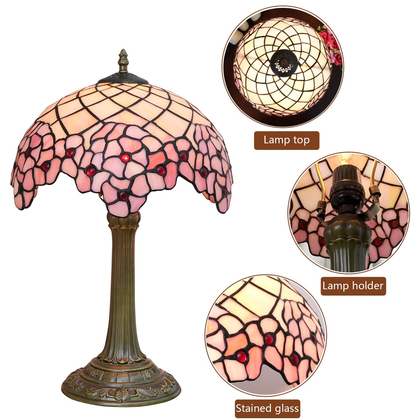 Traditional Tiffany Dome Sakura Aluminium Alloy Glass 1-Light Table Lamp For Bedside