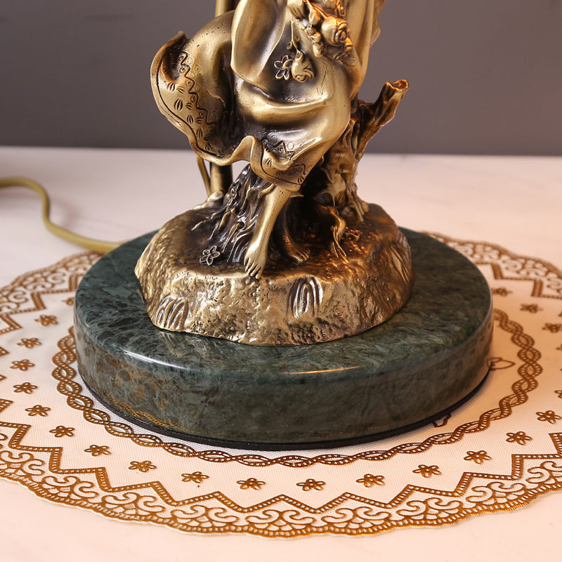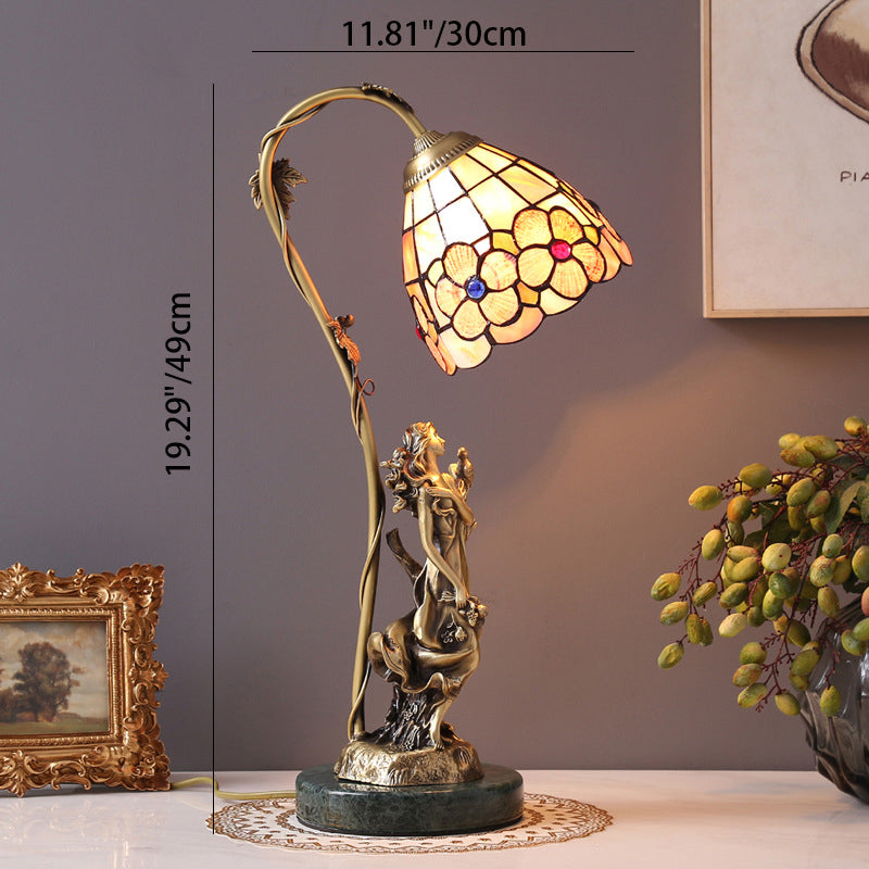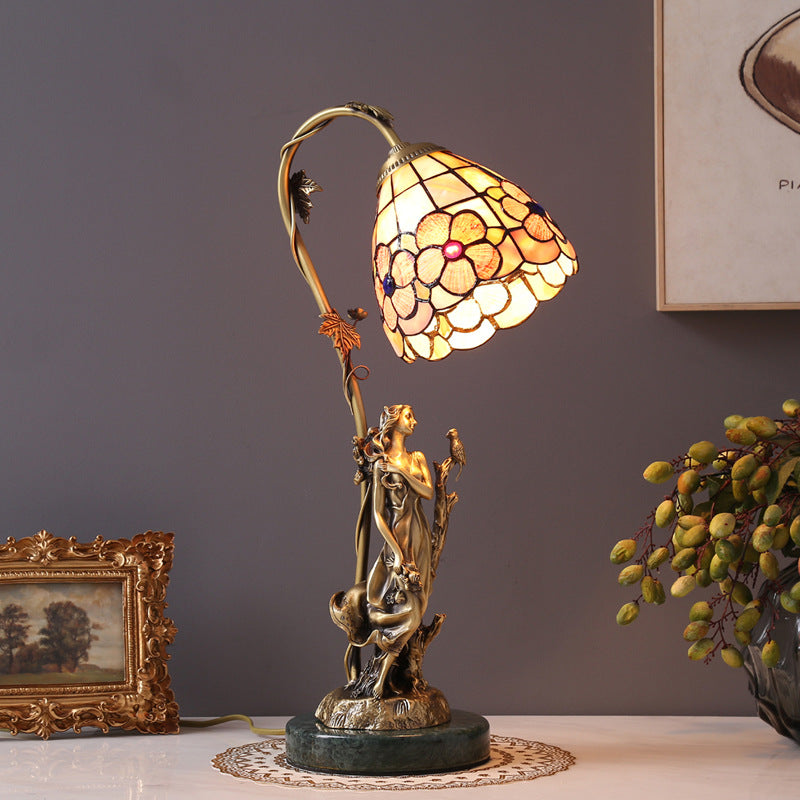 Traditional Tiffany Goddess Dome Copper Glass 1-Light Table Lamp For Bedroom
