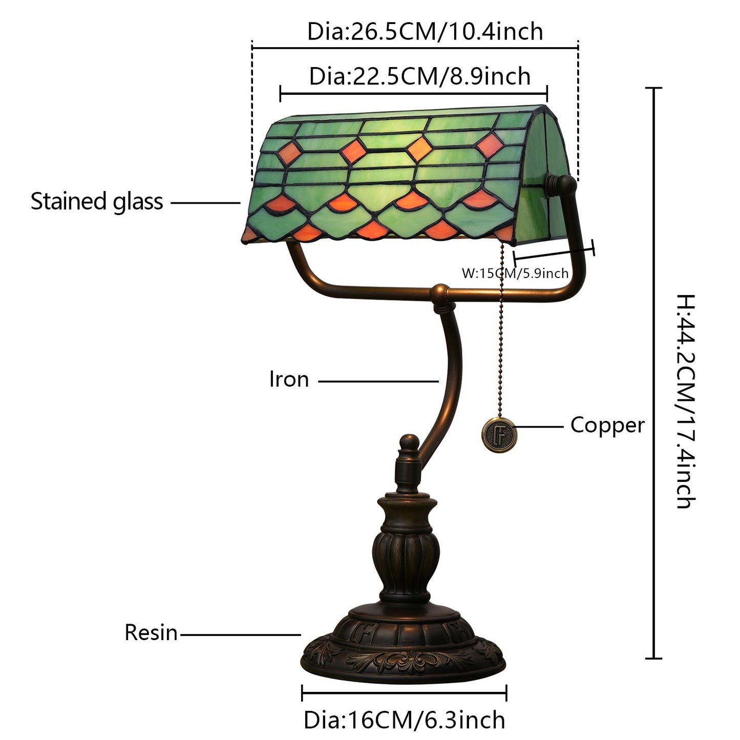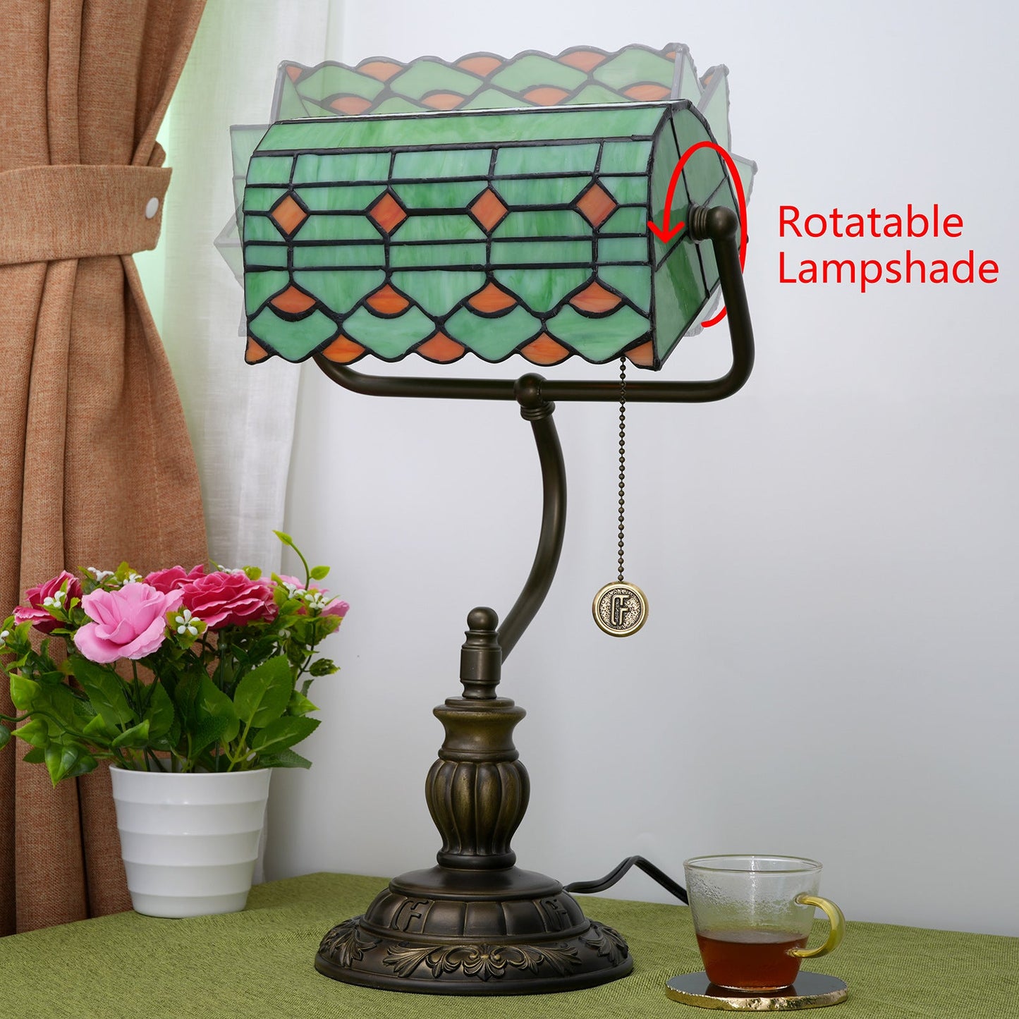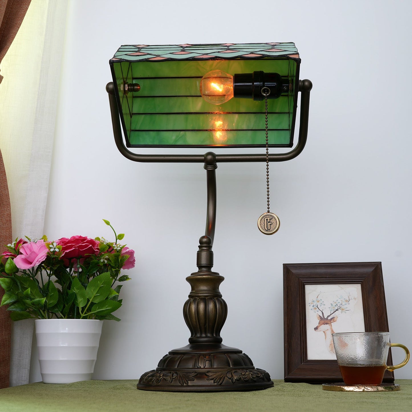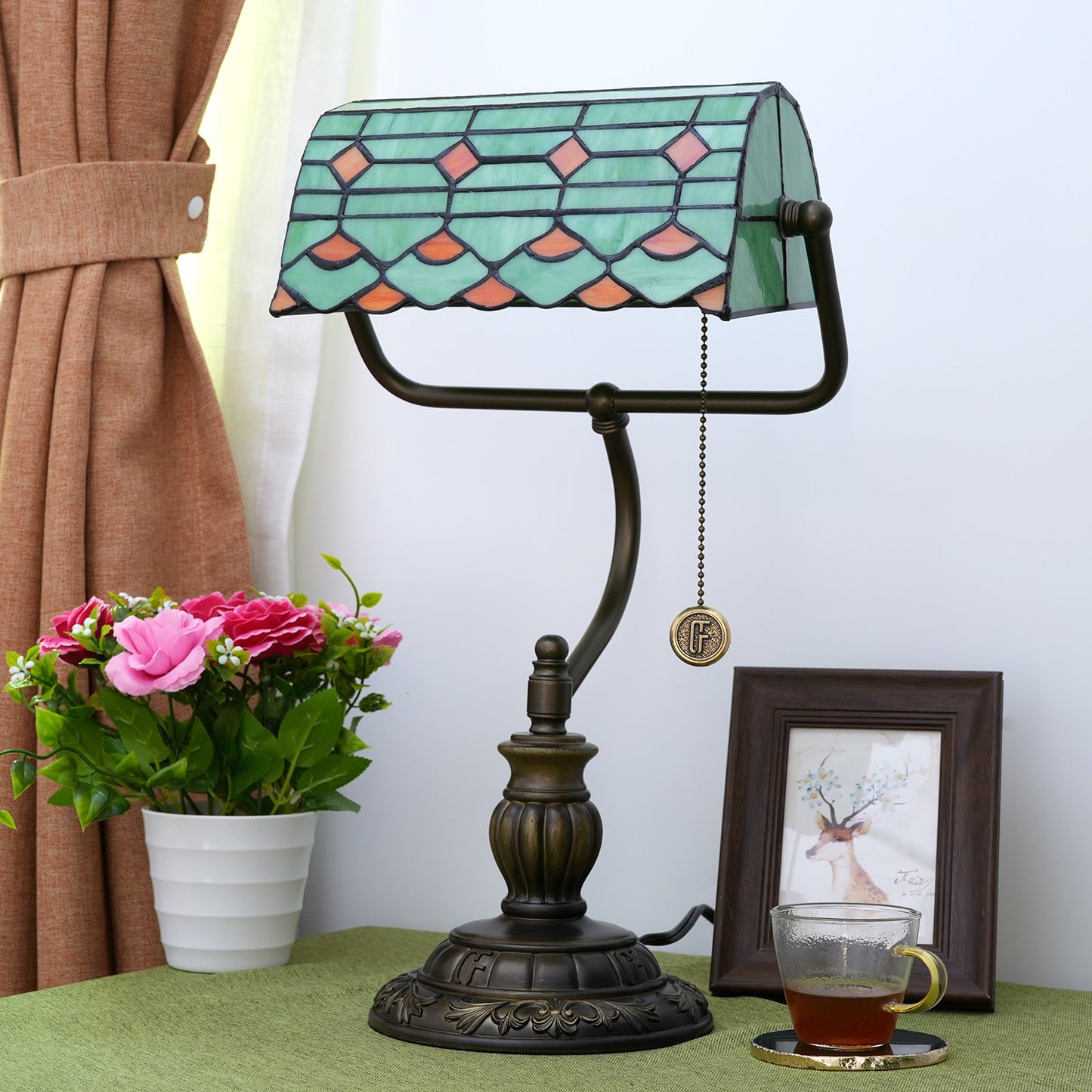 Traditional Tiffany Green Leaf Red Spot Trapezoidal Iron Resin Glass 1-Light Zipper Table Lamp For Bedside