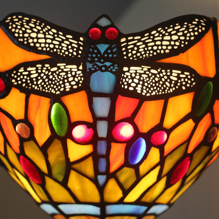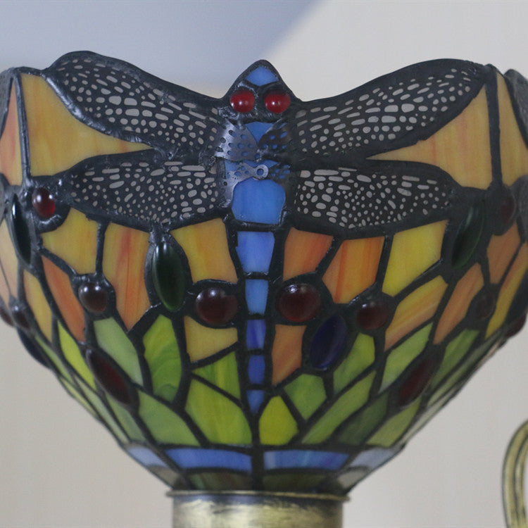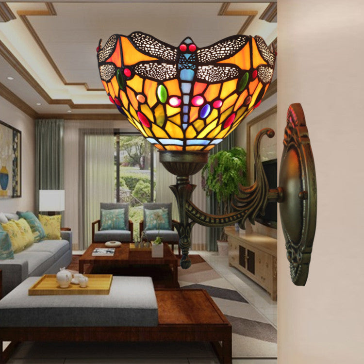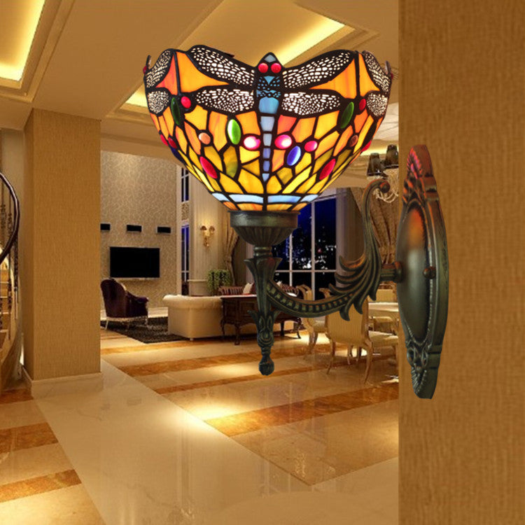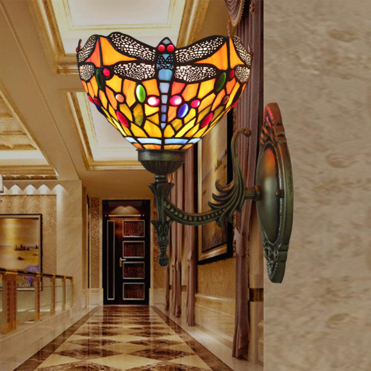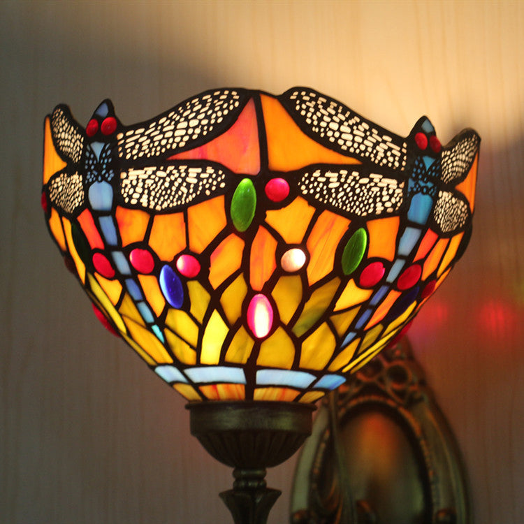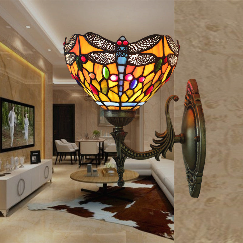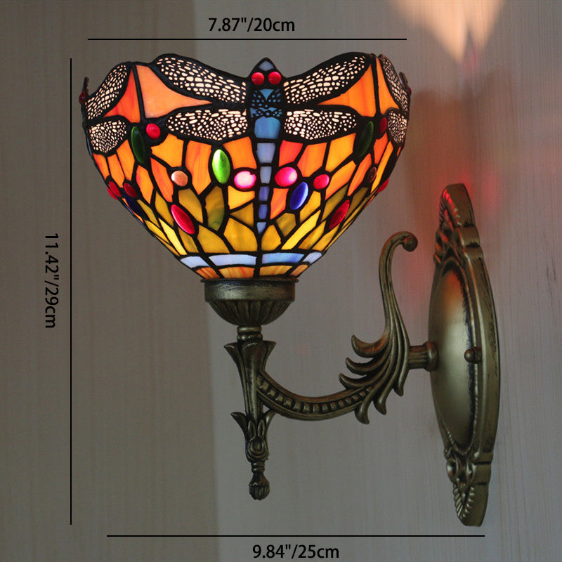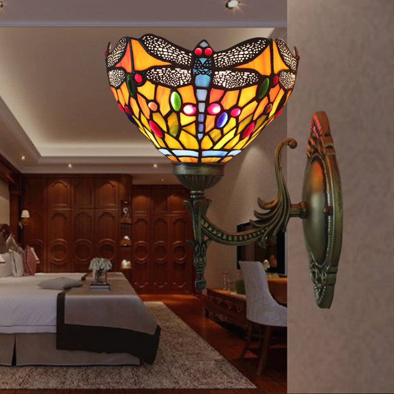 Traditional Tiffany Semi-Circle Iron Stained Glass 1-Light Wall Sconce Lamp For Bedroom