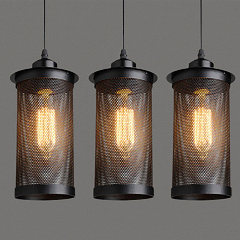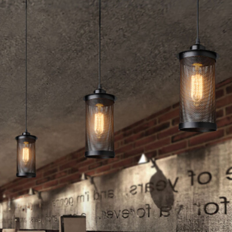 Traditional Vintage Cylinder Iron 1-Light Pendant Light For Living Room