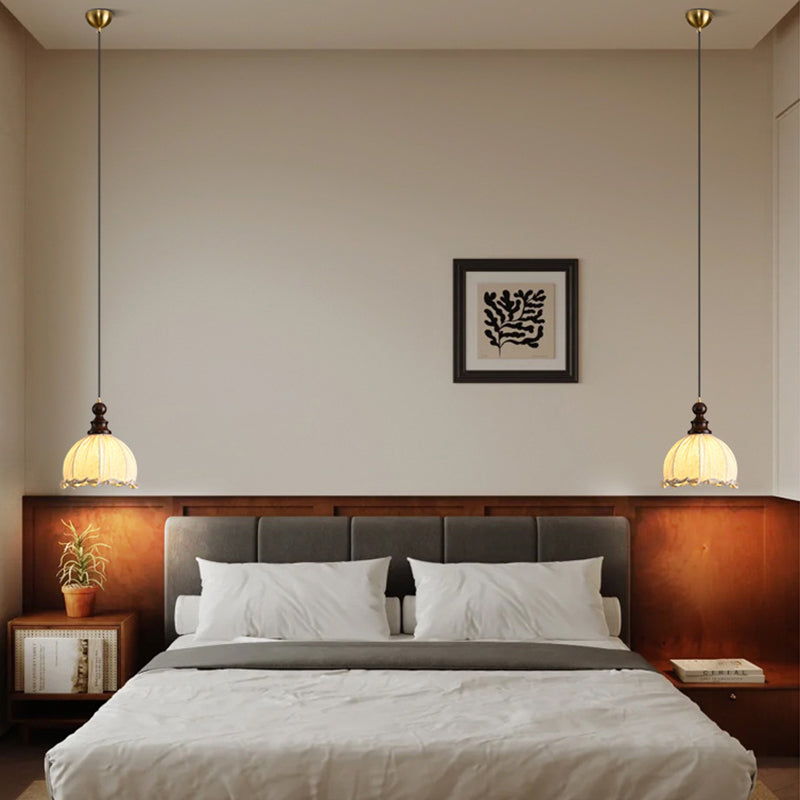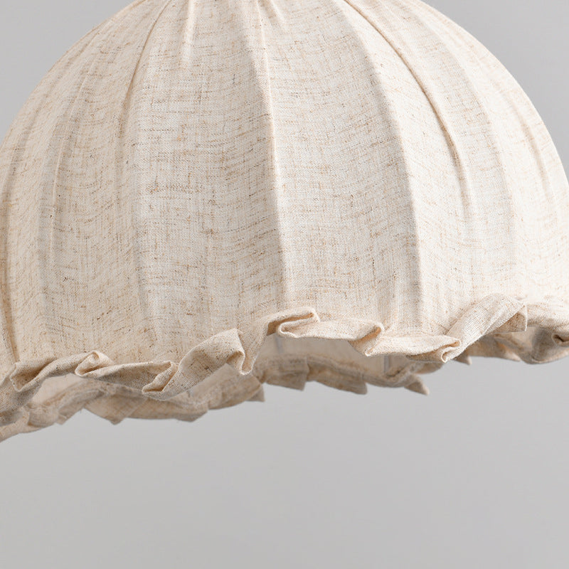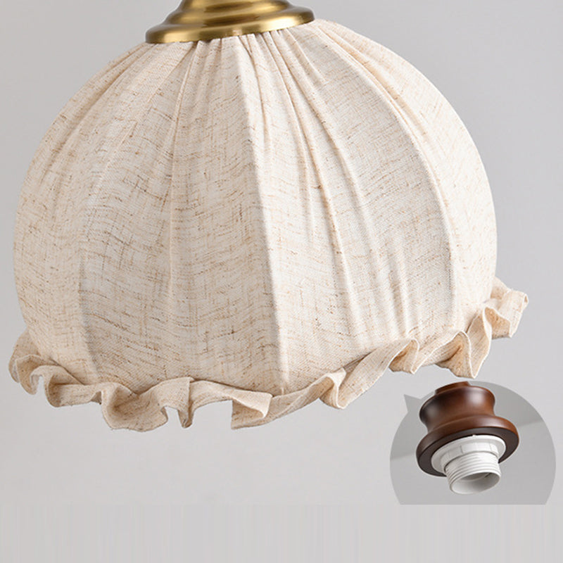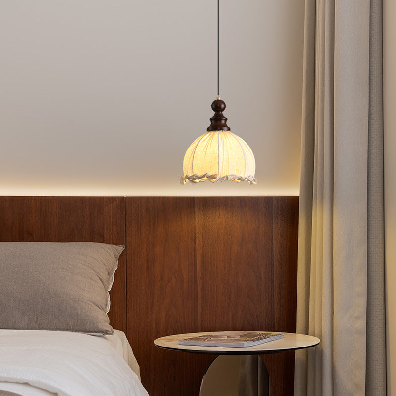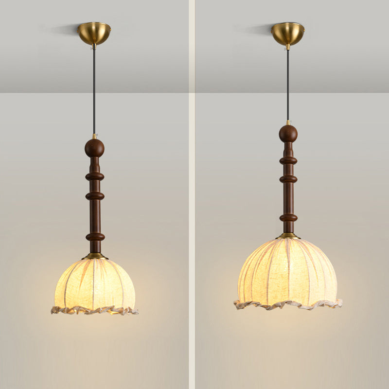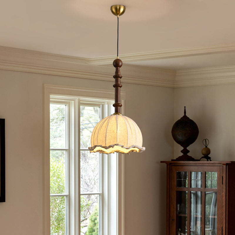 Traditional Vintage Dome Cylinder Lace Fabric Shade Wood Hardware Frame 1-Light Pendant Light For Living Room