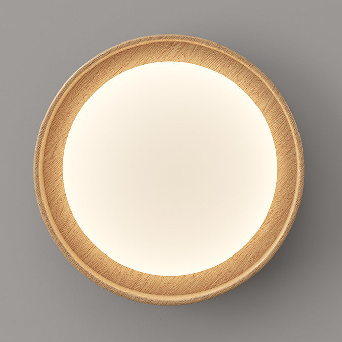 Traditional Vintage Rubber Wood PE Round LED Flush Mount Ceiling Light For Bedroom & Living