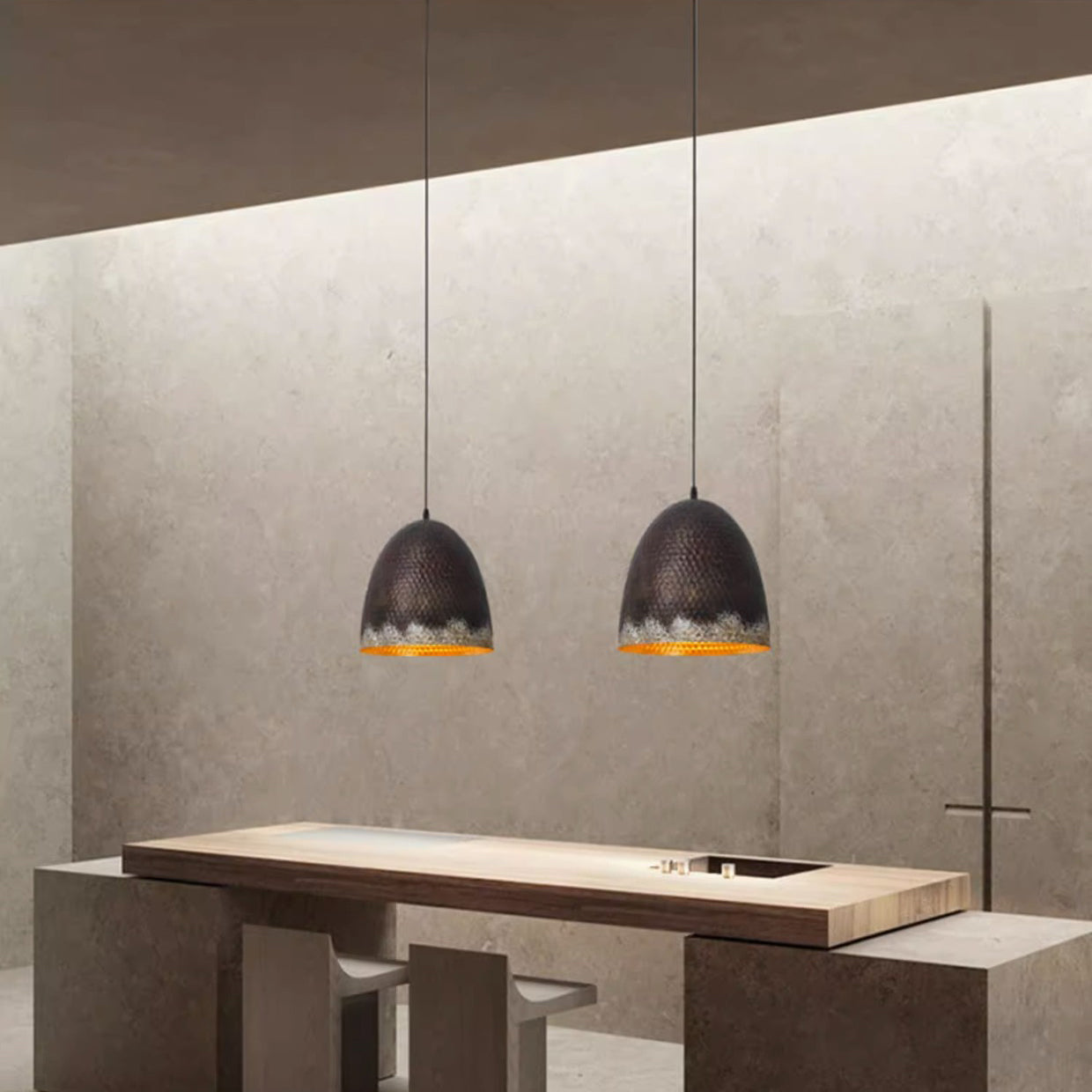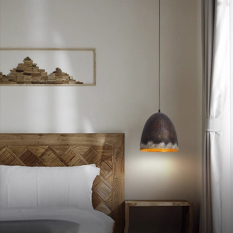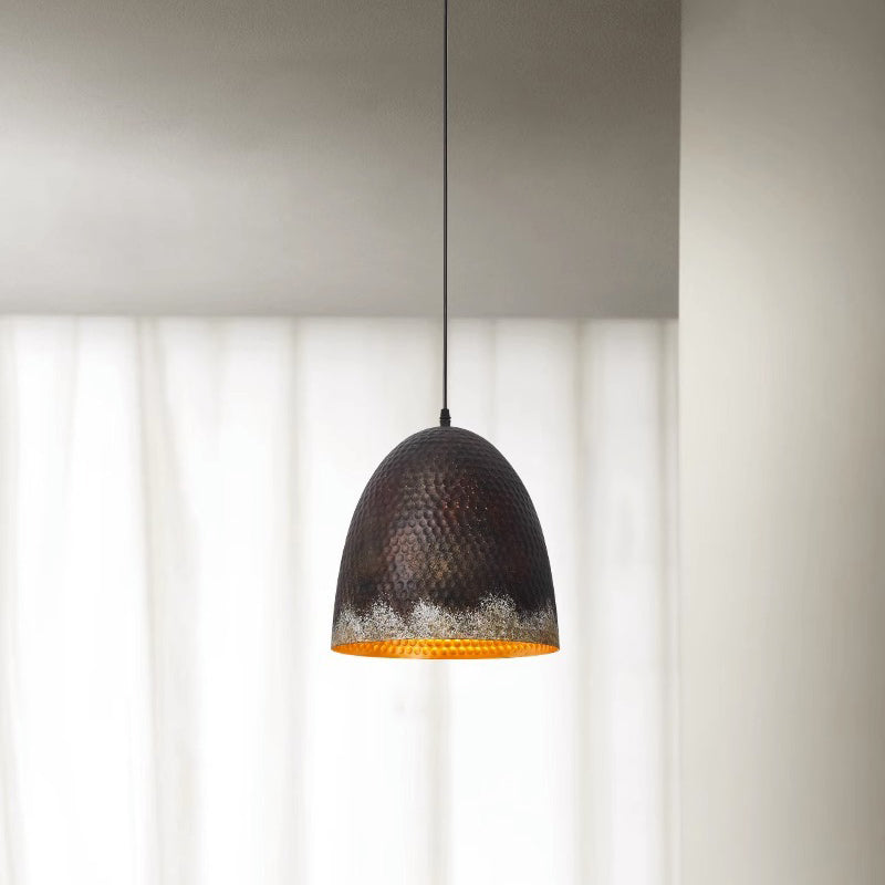 Traditional Vintage Semicircle Oval Dot Hand Painted Steel 1-Light Pendant Light For Living Room