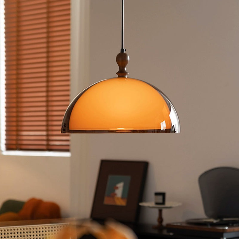 Traditional Vintage Semicircular Acrylic Wood Metal 1-Light Pendant Light For Dining Room