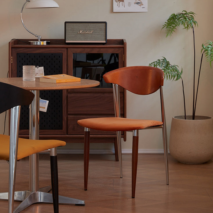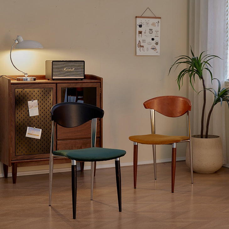 Traditional Vintage Square Metal Fabric Foam Dining Chair Four Legs Backrest For Dining Room