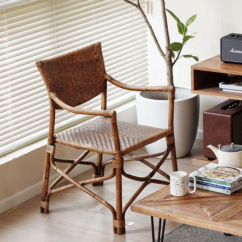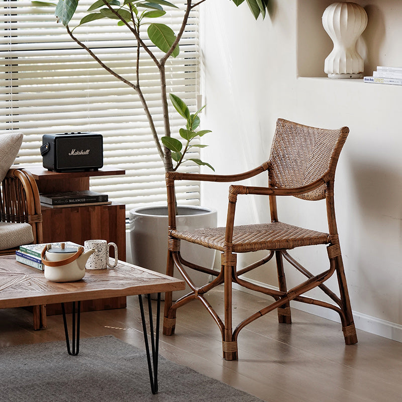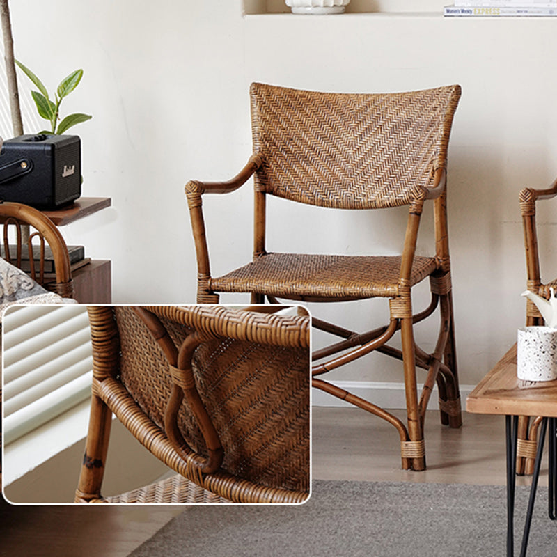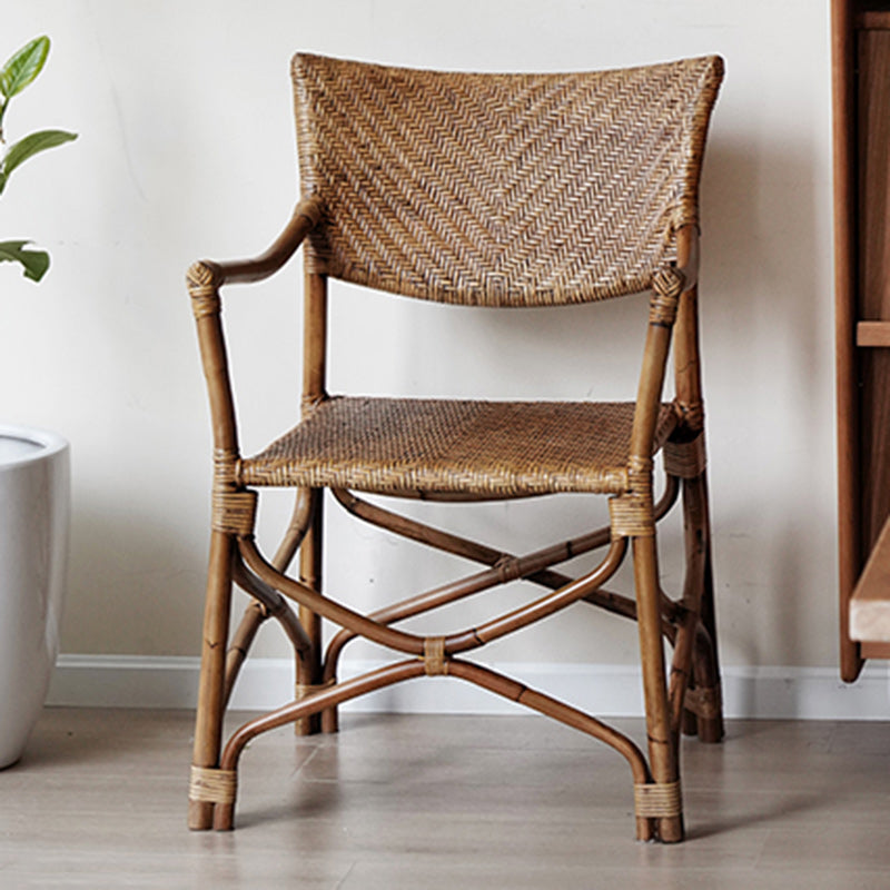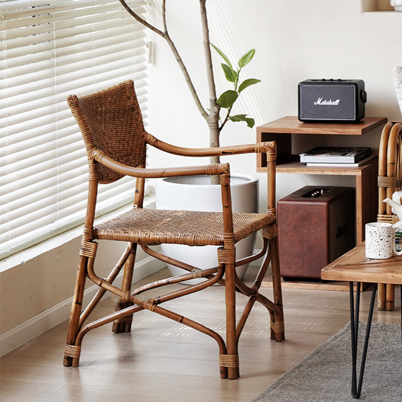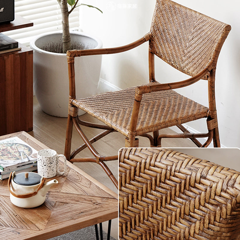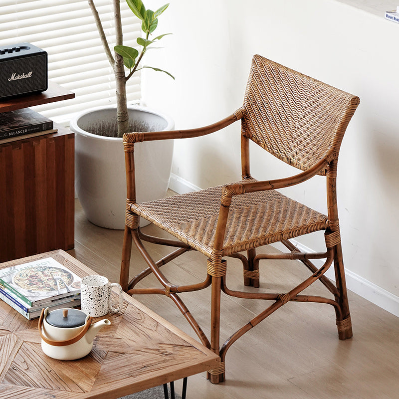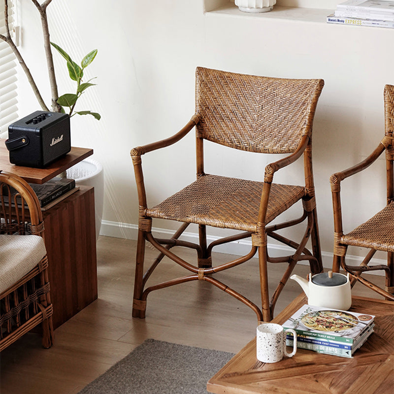Traditional Vintage Weaving Agate Vine Square Dining Chair Backrest Armrest For Dining Room