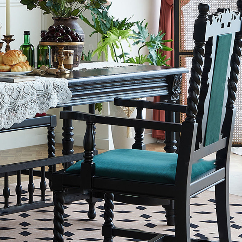 Traditional Vintage Wood Curved Frame Square Dining Chair Backrest For Dining Room