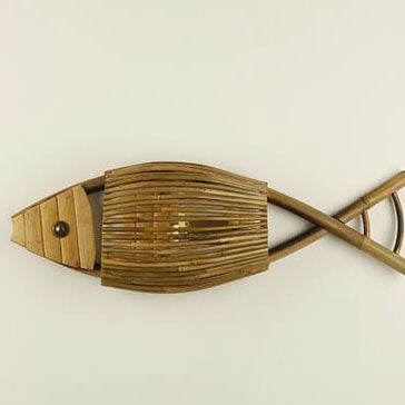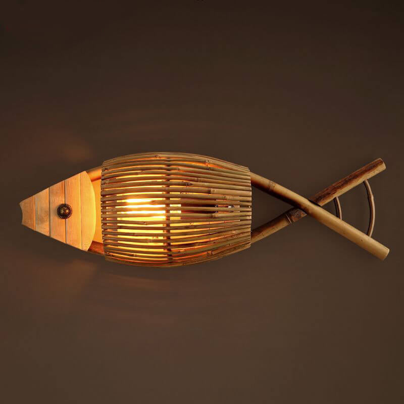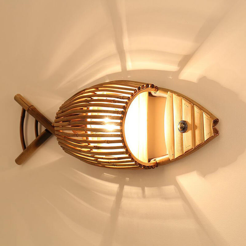 Vintage Bamboo Weaving Fish Shaped 1-Light Wall Sconce Lamp
