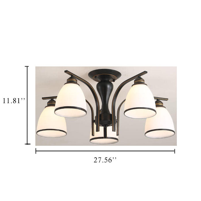 Vintage Bell Shade 3-5 Light Semi-Flush Mount Lighting