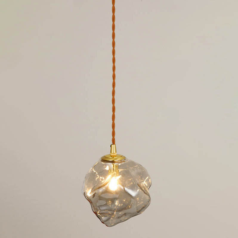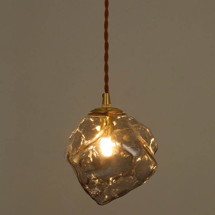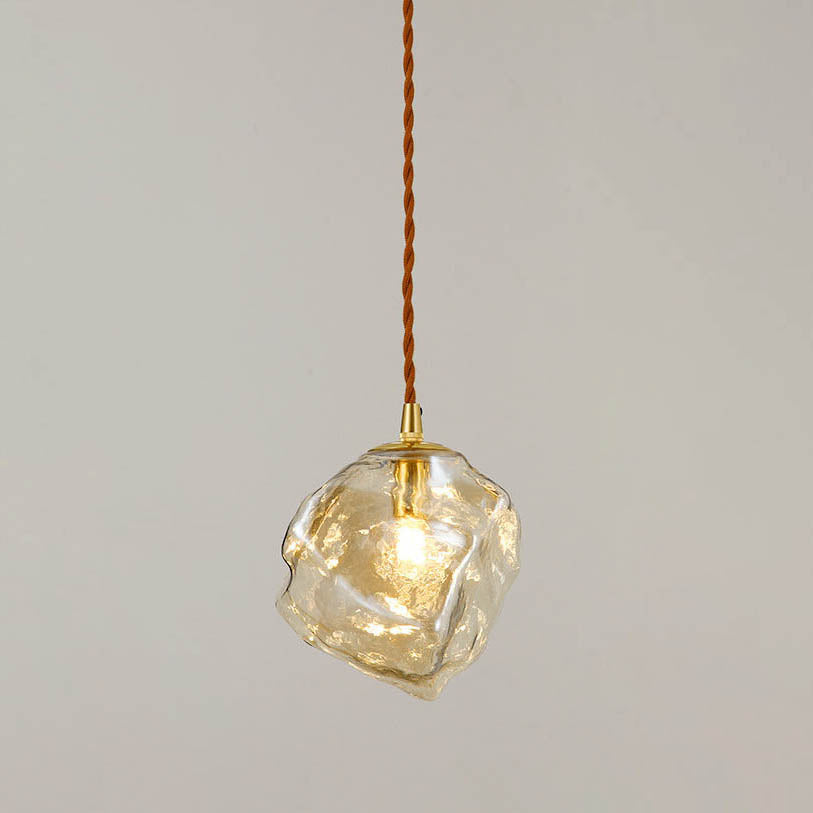 Vintage Lava Ice Cube Glass Walnut 1-Light LED Pendant Light