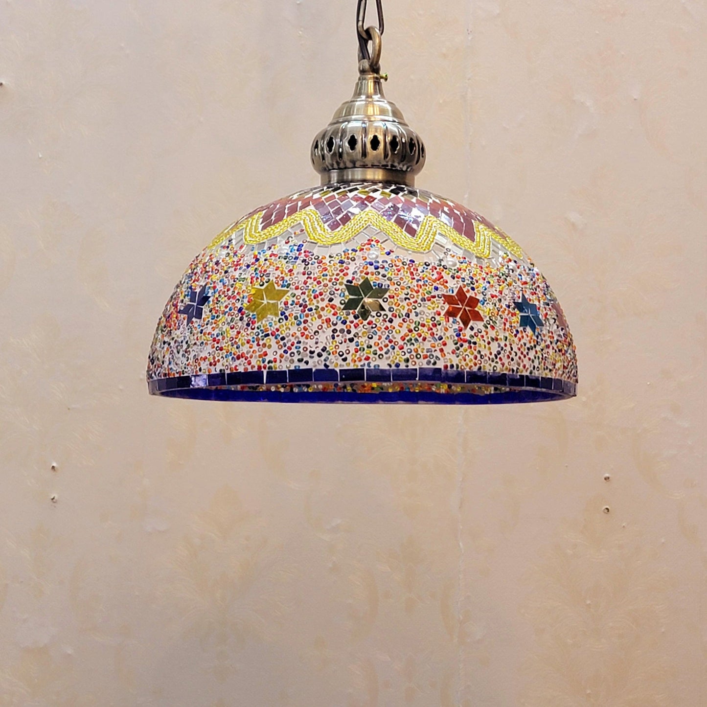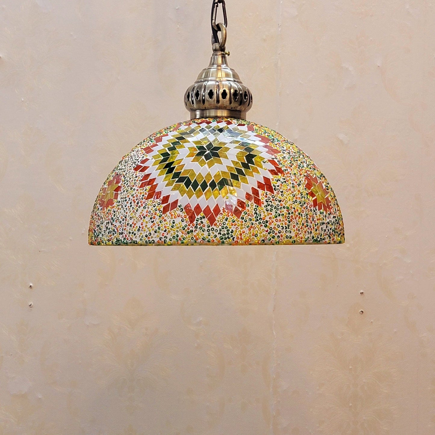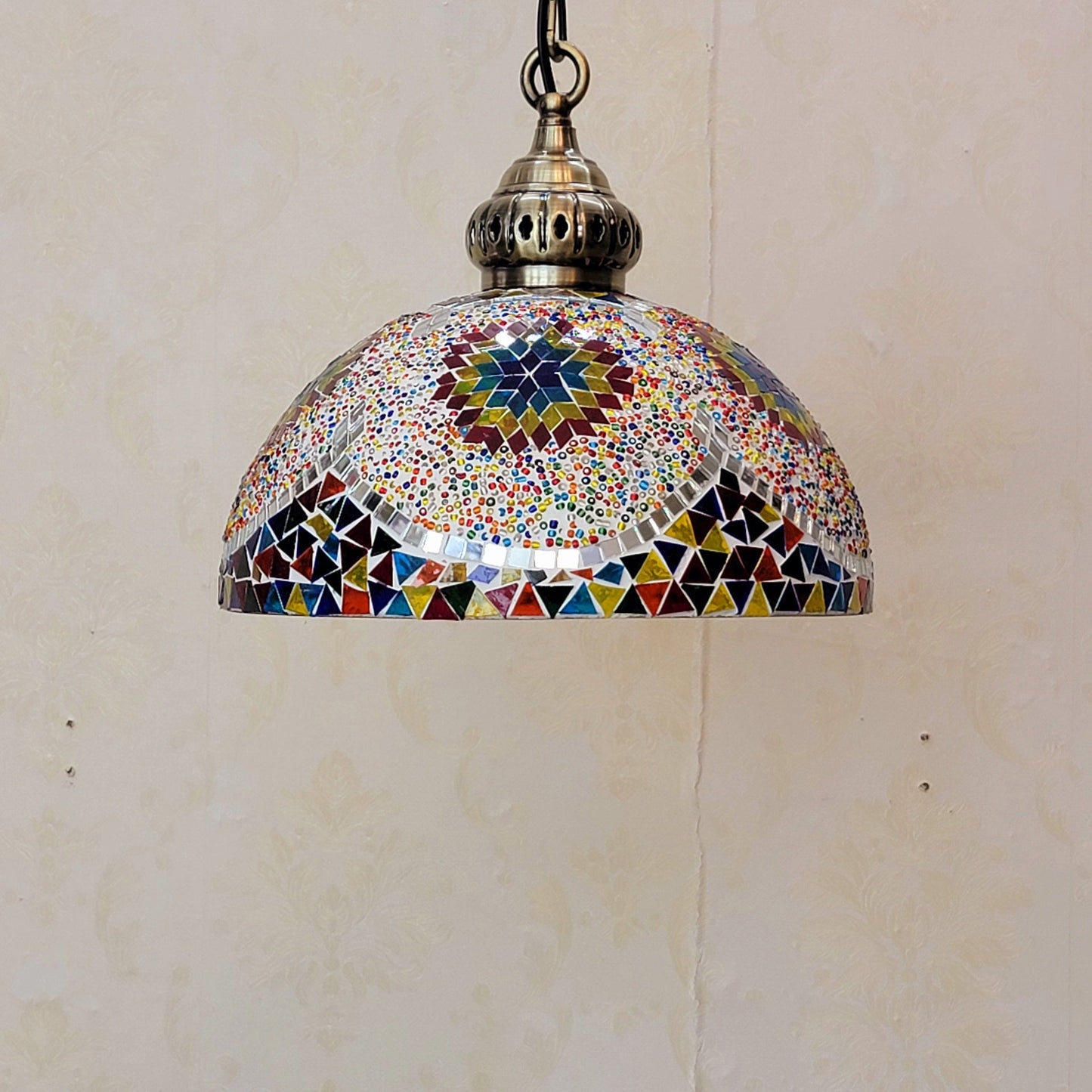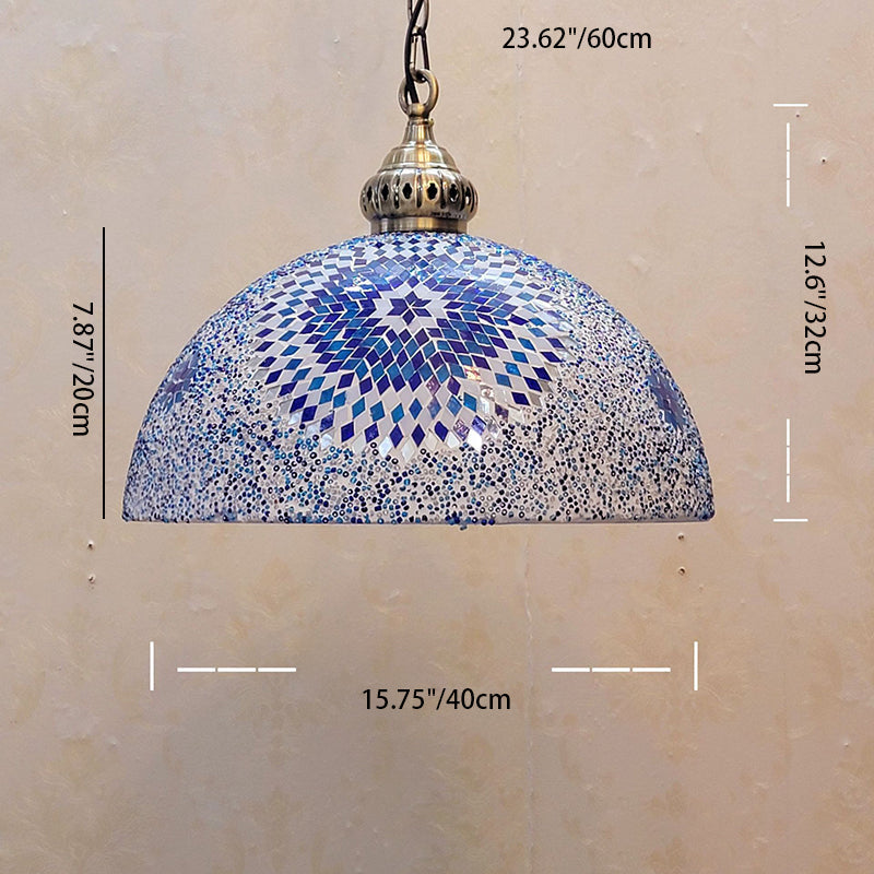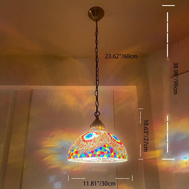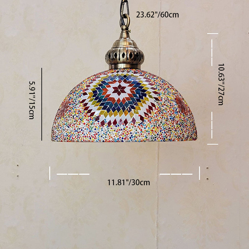 現代的なボヘミアンガラスアイアンドームモザイクビーズ1灯ペンダントライトダイニングルーム用