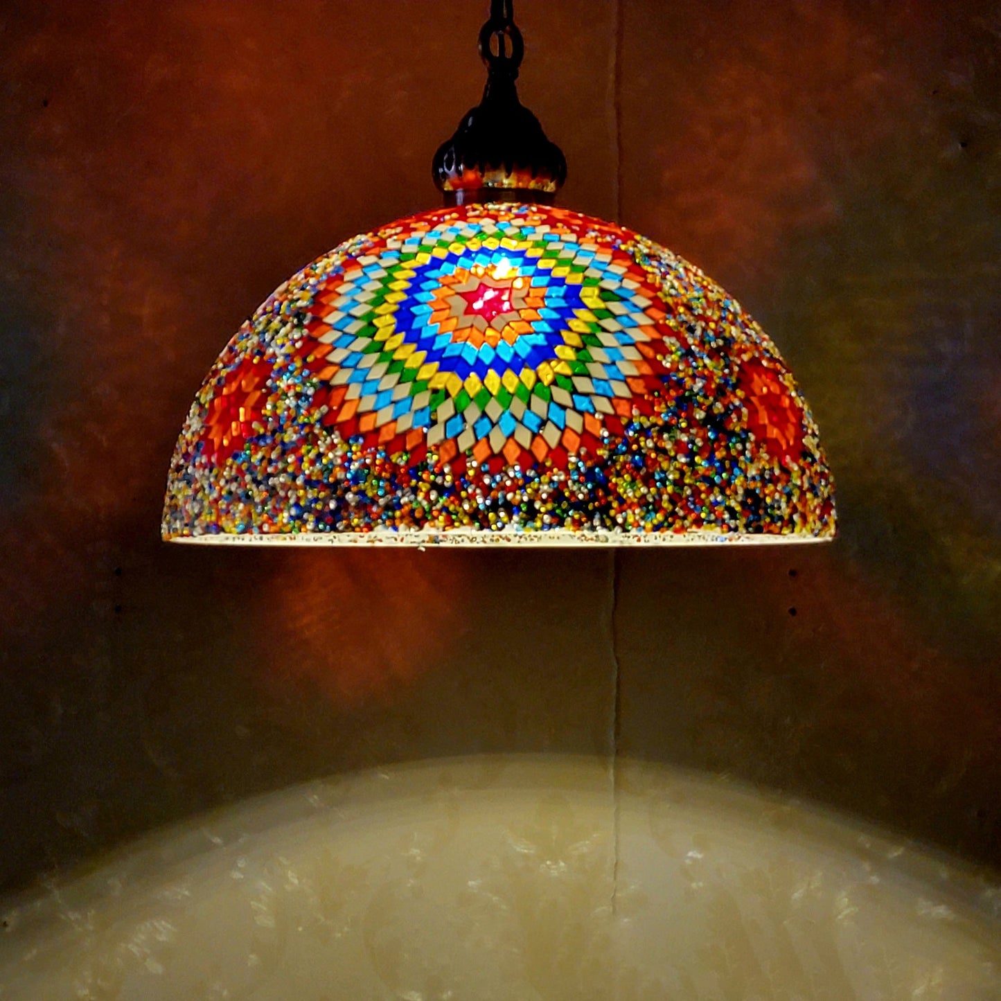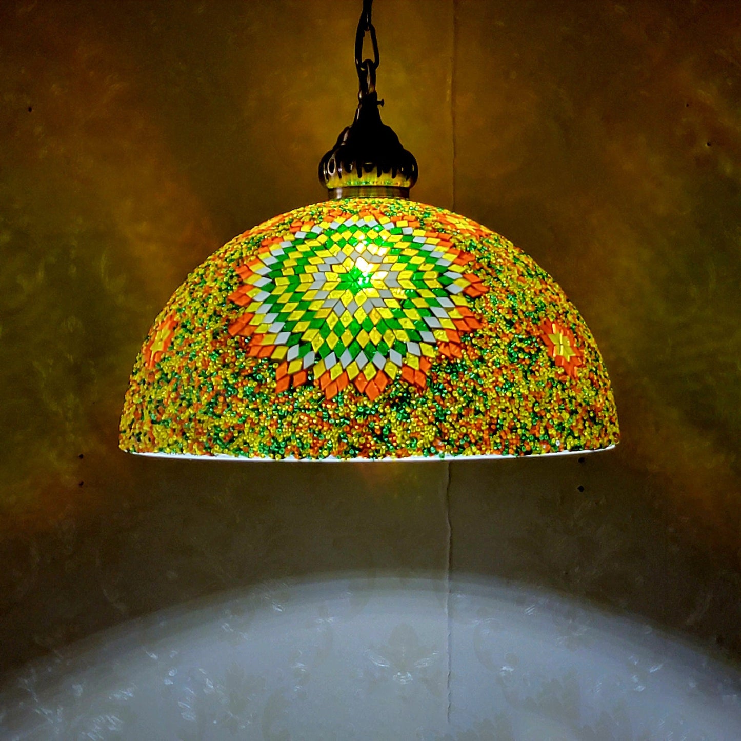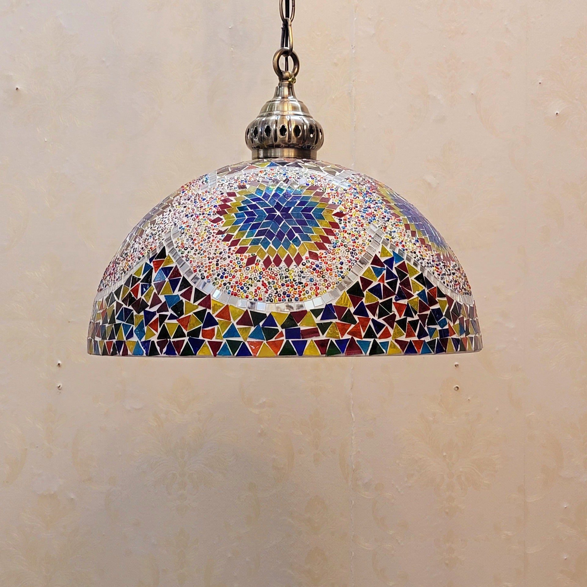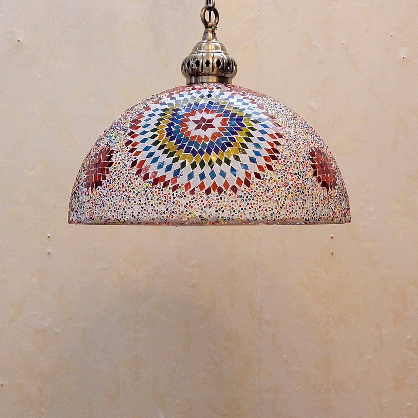 現代的なボヘミアンガラスアイアンドームモザイクビーズ1灯ペンダントライトダイニングルーム用
