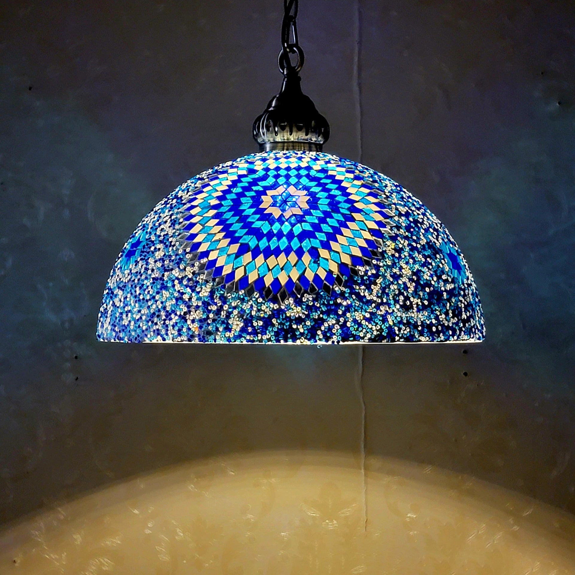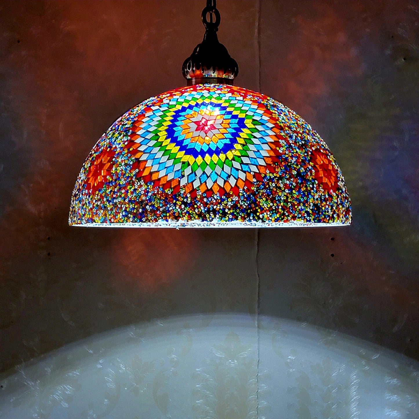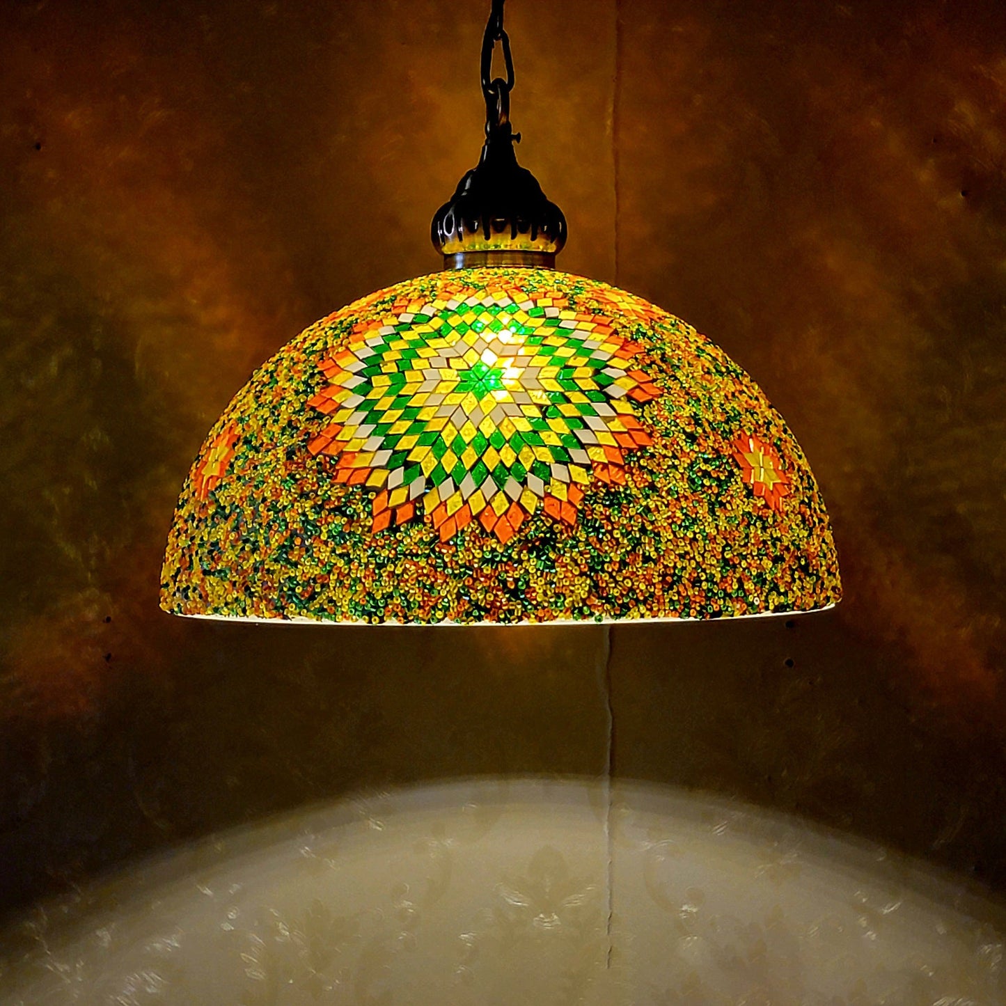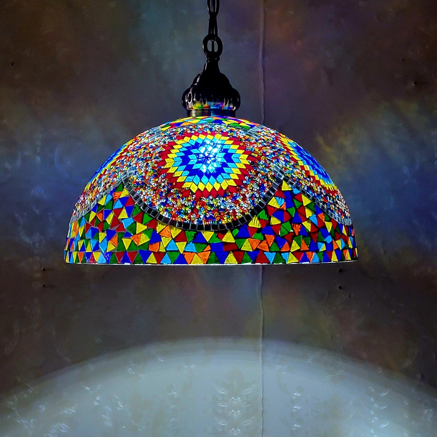 現代的なボヘミアンガラスアイアンドームモザイクビーズ1灯ペンダントライトダイニングルーム用