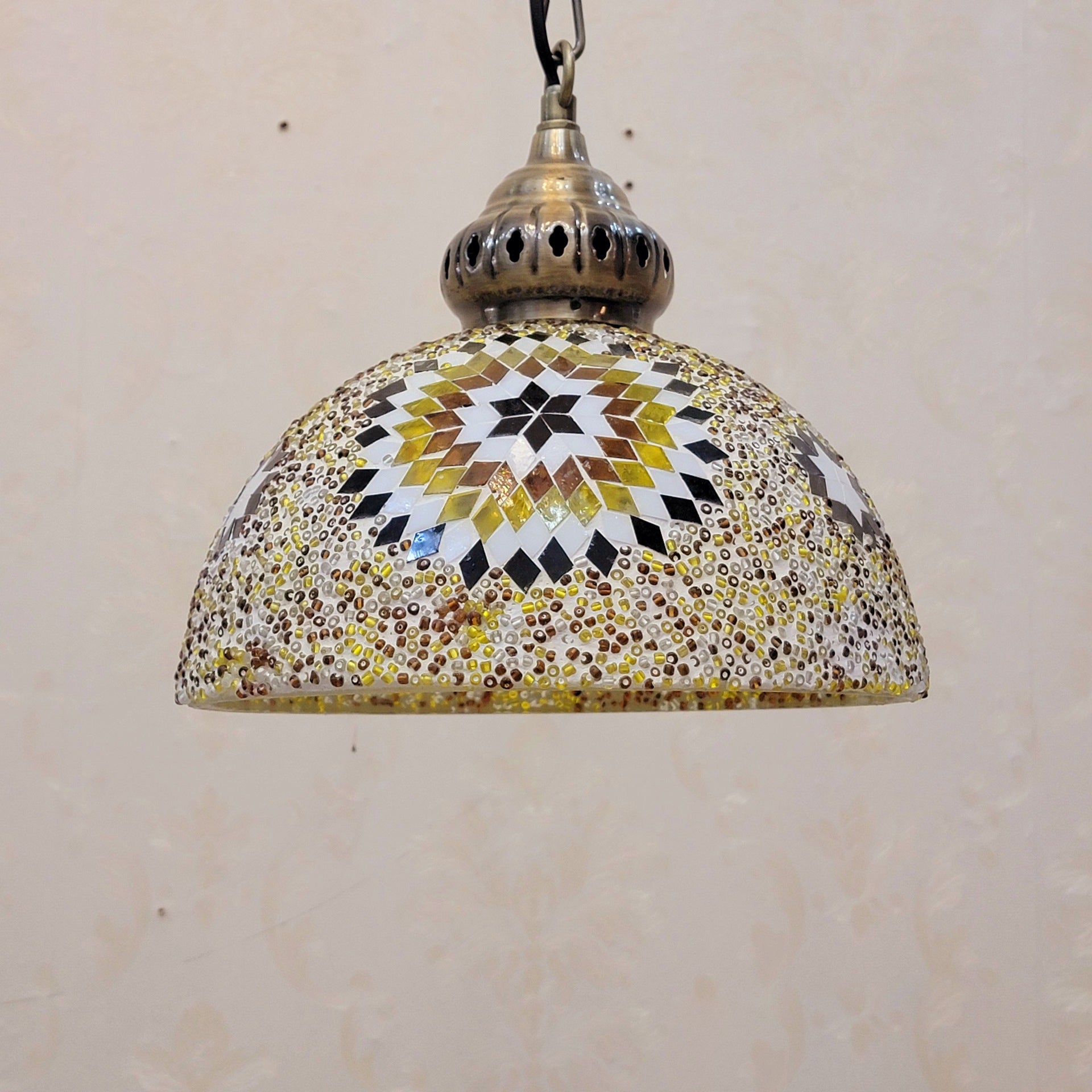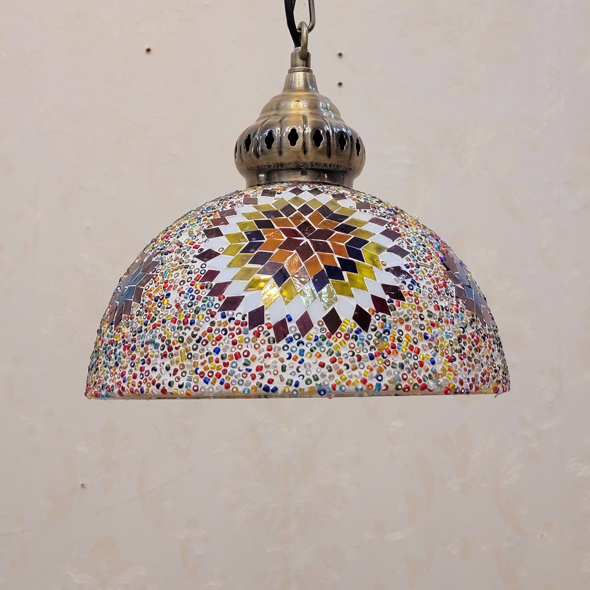 現代的なボヘミアンガラスアイアンドームサンモザイクビーズ1ライトペンダントライトダイニングルーム用