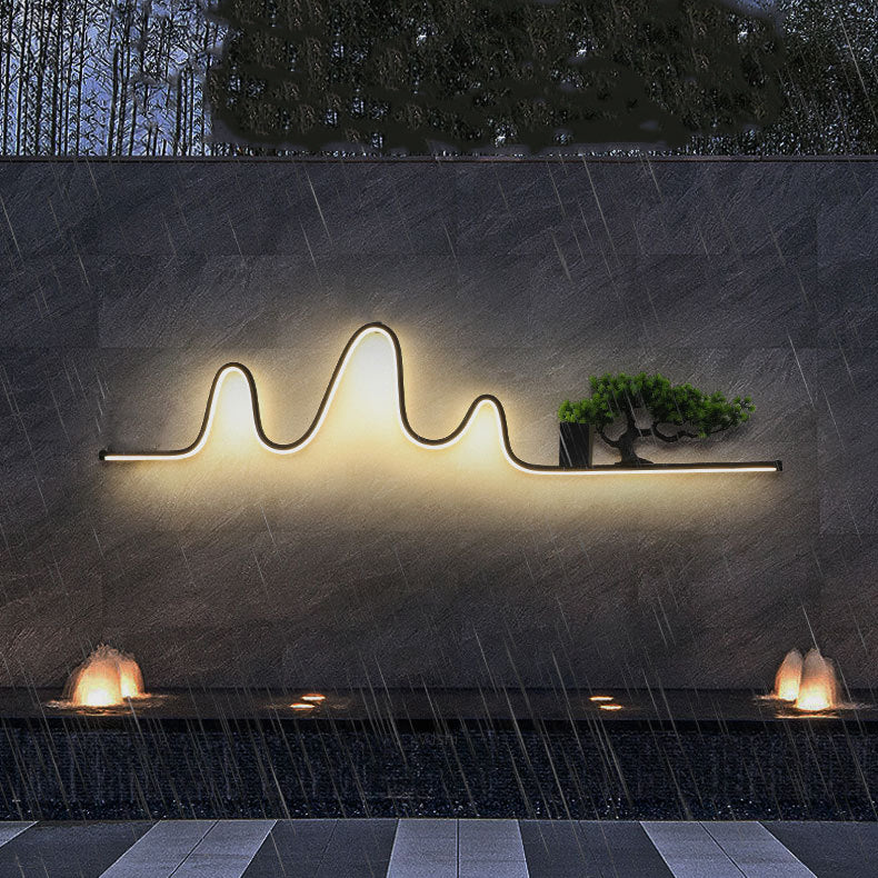 現代的でクリエイティブなアルミ製アークリニアPVC模造パインウッドLED防水屋外壁取り付け用燭台ランプ(ガーデン用)