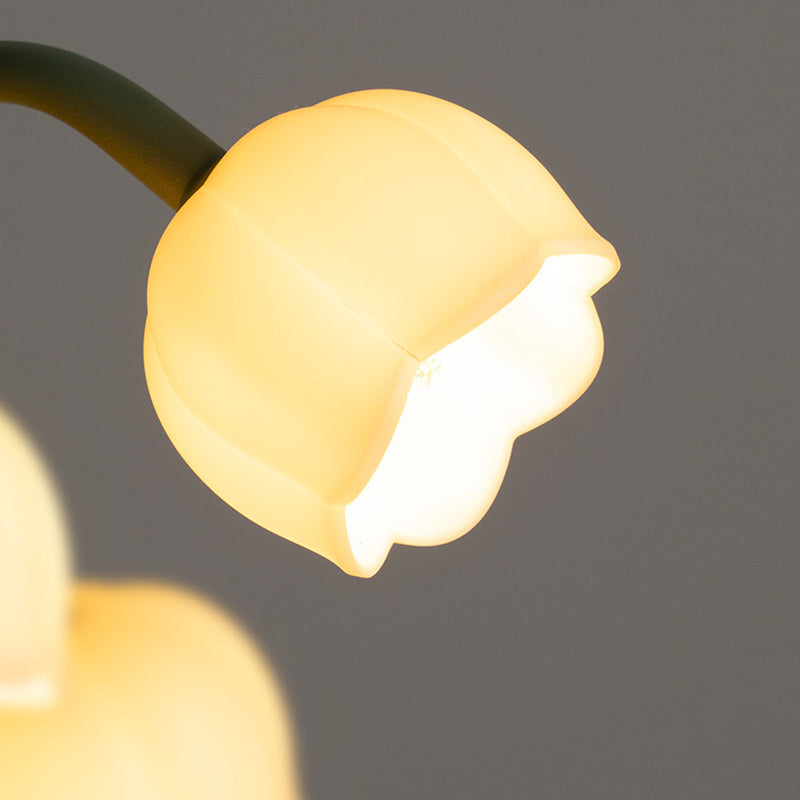 Contemporary Creative Bell Orchid Flower Round Iron PC 5-Light Table Lamp For Bedroom