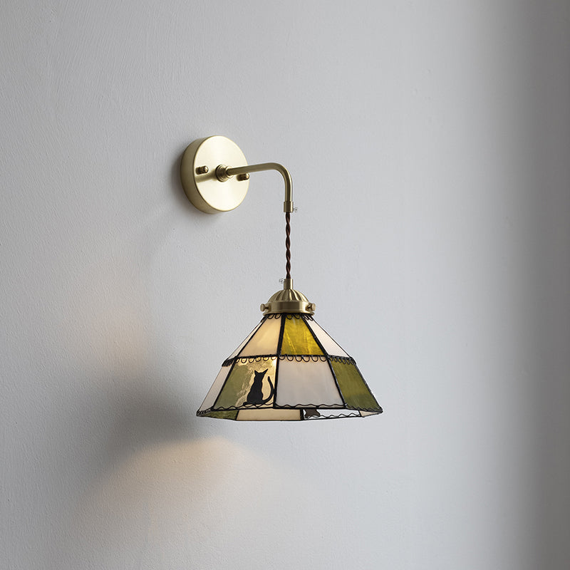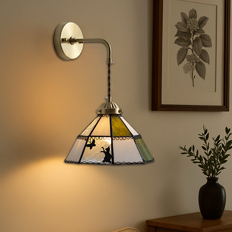 現代的でクリエイティブな円錐形の猫の蝶の真鍮ガラス1灯壁取り付け用燭台ランプ寝室用