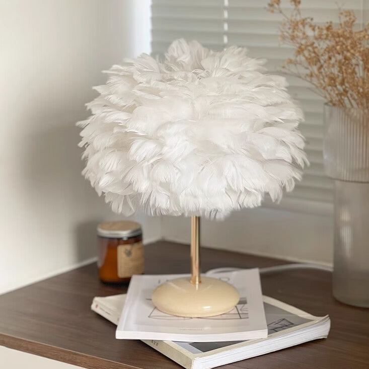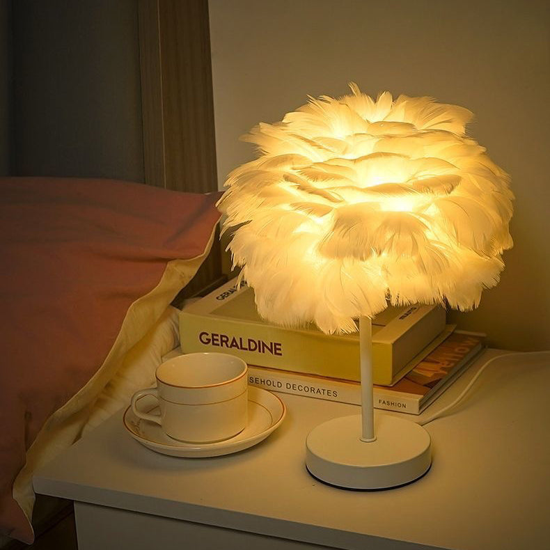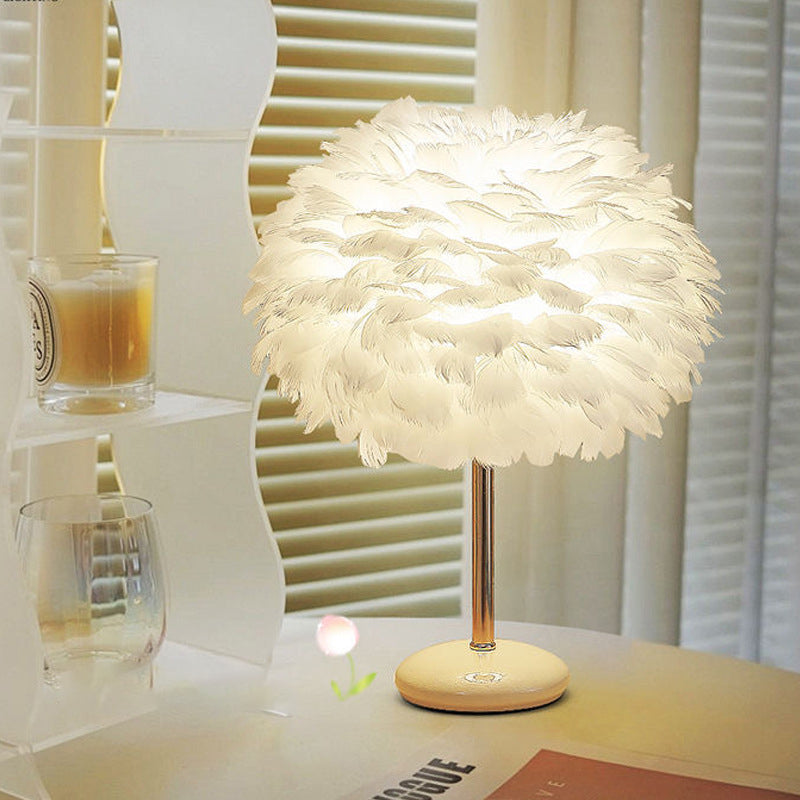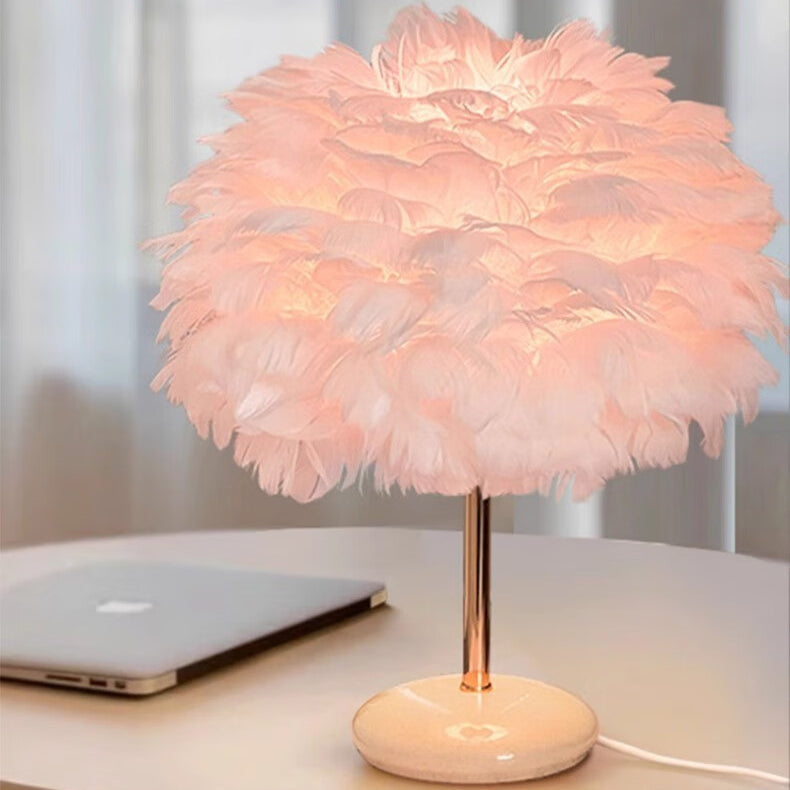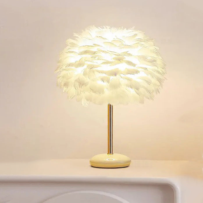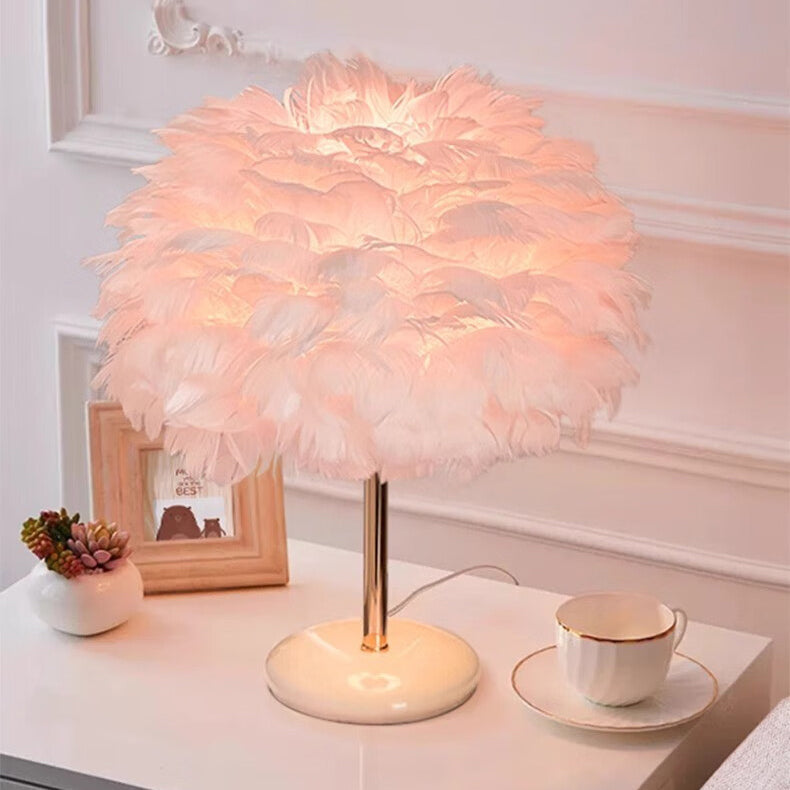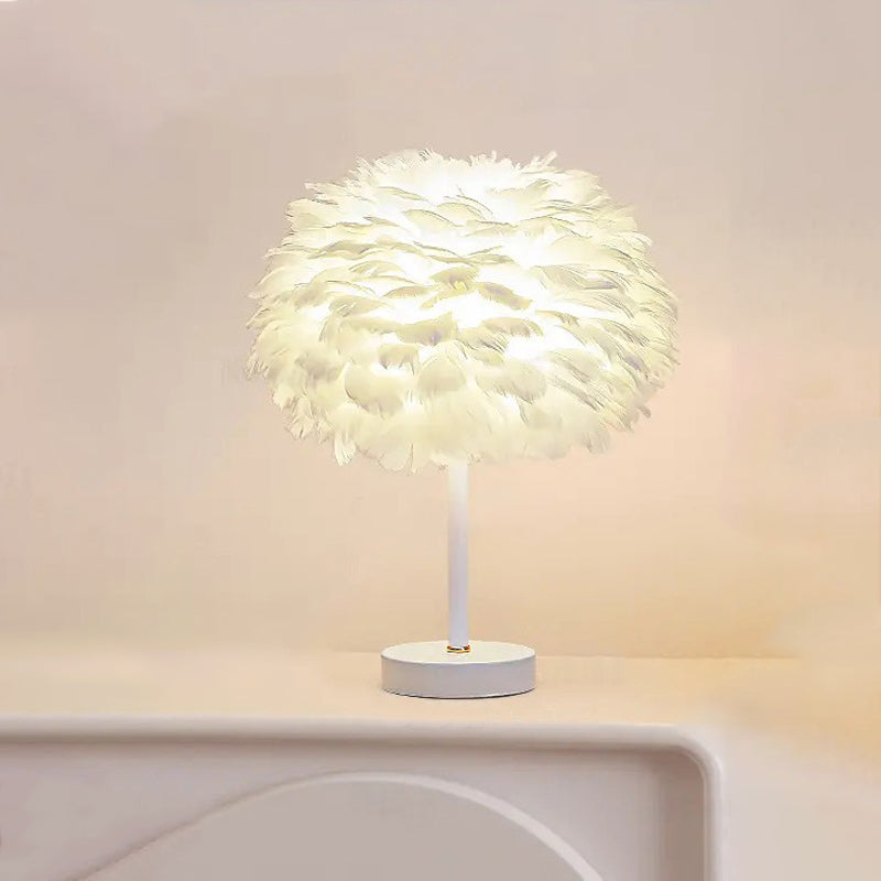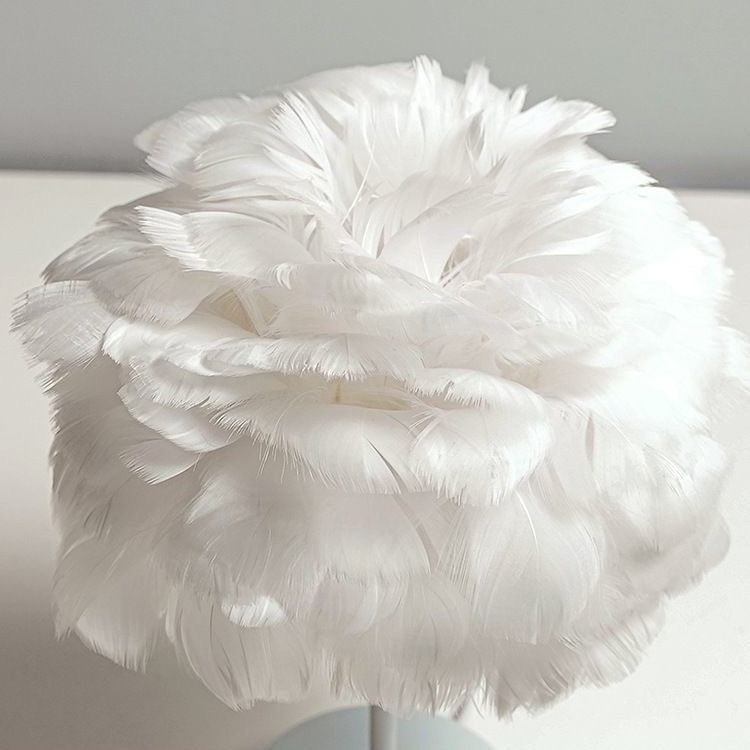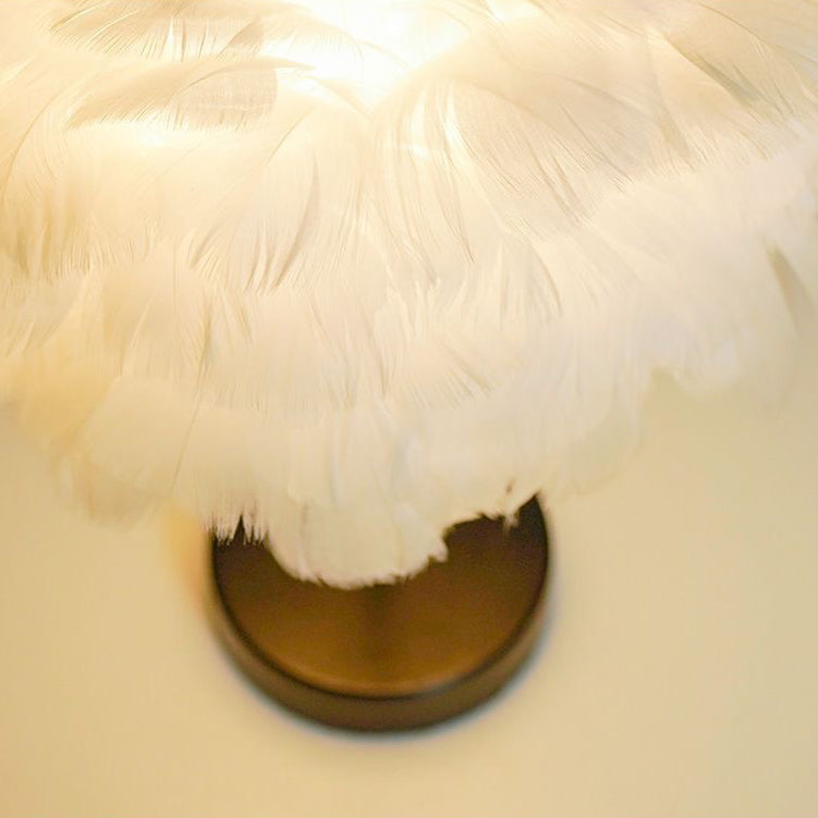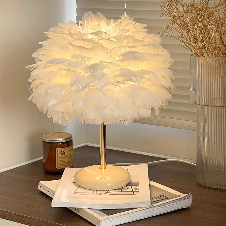 Contemporary Creative Feather Oval Shade Ice Cracked Ceramic Base 1-Light Table Lamp For Bedroom